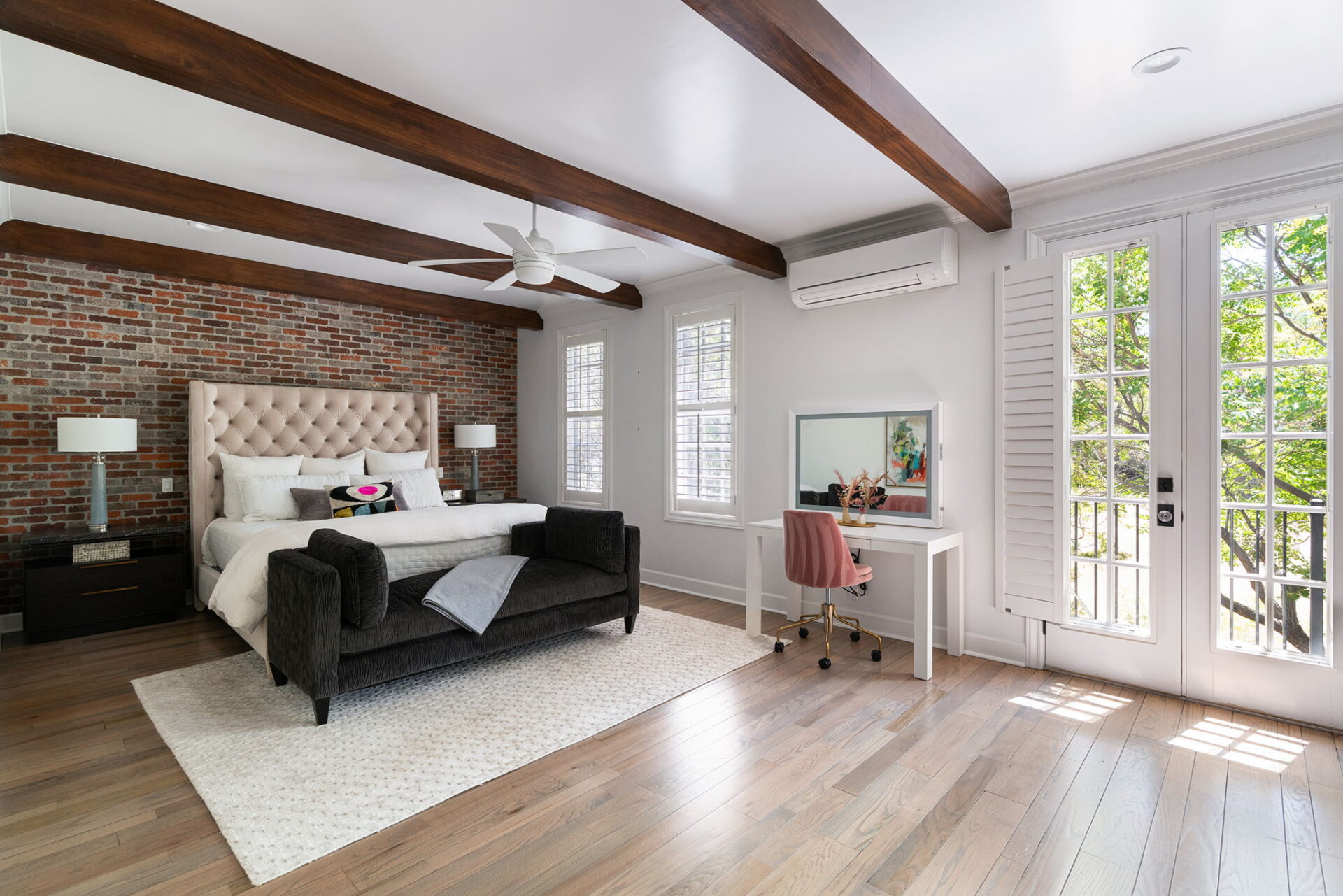 Every detail and corner tells a story, and the right buyer will feel it instantly. From the moment you step into the entry hall, it’s clear this isn’t a typical home. Artisan plaster walls, solid wood doors, and hand-honed finishes whisper of craftsmanship rarely seen in modern builds. The main-level suite has a fireplace, private terrace, radiant heated floors, and a boutique-worthy closet with floor-to-ceiling built-ins for seamless organization. Upstairs, a two-bedroom wing with a shared lounge and dry bar creates a tucked-away apartment-like zone—perfect for teens, guests, or anyone who values autonomy without absence. A second en-suite bedroom on the main level provides long-term flexibility for guests or multigenerational living. Another vaulted-beam bonus room offers space for a home office, media lounge, or creative studio. Vaulted ceilings with exposed beams and an arched fireplace give the living room architectural weight, while dual chandeliers add a subtle elegance. A grid of French doors and windows shapes the room’s rhythm and light. Despite its scale, the space envelops you with a built-in library and corners in which to gather or disappear. Off the living room, a converted garden studio with original brick floors serves as a home gym with views of the lush exterior. The kitchen invites you to make meals, memories, and moods. Brickwork and wood beam ceilings echo the entry and exterior, carrying the home’s language forward with warmth and texture. Custom cabinetry with soft-close drawers surrounds high-end appliances—including dual Sub-Zero refrigerator drawers, Café double ovens, Viking warming drawer, and a U-Line ice maker. A DCS Fisher & Paykel gas range with integrated ventilation stands ready for everything from weeknight dinners to holiday feasts. The dumbwaiter from the garage is a functional delight and a favorite party trick. Even the laundry room and functional closet just off the oversized garage have a point of view. With built-in cabinetry and finishes focused on everyday ease, everyday chores feel like a design moment. The garage features generous dimensions and clean finishes, offering storage and work space beyond parking. Outside, a brick path winds through shaded patios, fruit trees, terraced garden beds, and grassy expanses. Multiple seating areas—some open-air, others tucked beneath eaves—offer places to gather, pause, and exhale. A private courtyard—shaped by layers of landscape and framed by brick—has hosted vow renewals, milestone photos, and other meaningful celebrations over the years. A powered outbuilding with a Dutch door, surrounded by irrigated raised planting beds, anchors a corner of the yard with both purpose and potential. And then there’s the history of Greenridge itself, one of Reno’s original prestige neighborhoods. Developed in the 1930s by Norman Biltz and modeled after luxury subdivisions in Beverly Hills and the East Coast, it once drew names like Doris Duke, Clark Gable, and Marilyn Monroe. Today, the neighborhood has traded celebrity sightings for Halloween magic shows, front-yard wine nights, and strolls with dogs and drinks in tow. People wave from lawn chairs as children roam the curved streets on scooters and bikes, or walk to the nearby golf course for a Coke and fries. Homes like this—so layered, so finished, so cherished—are increasingly rare and even more so in neighborhoods like this.