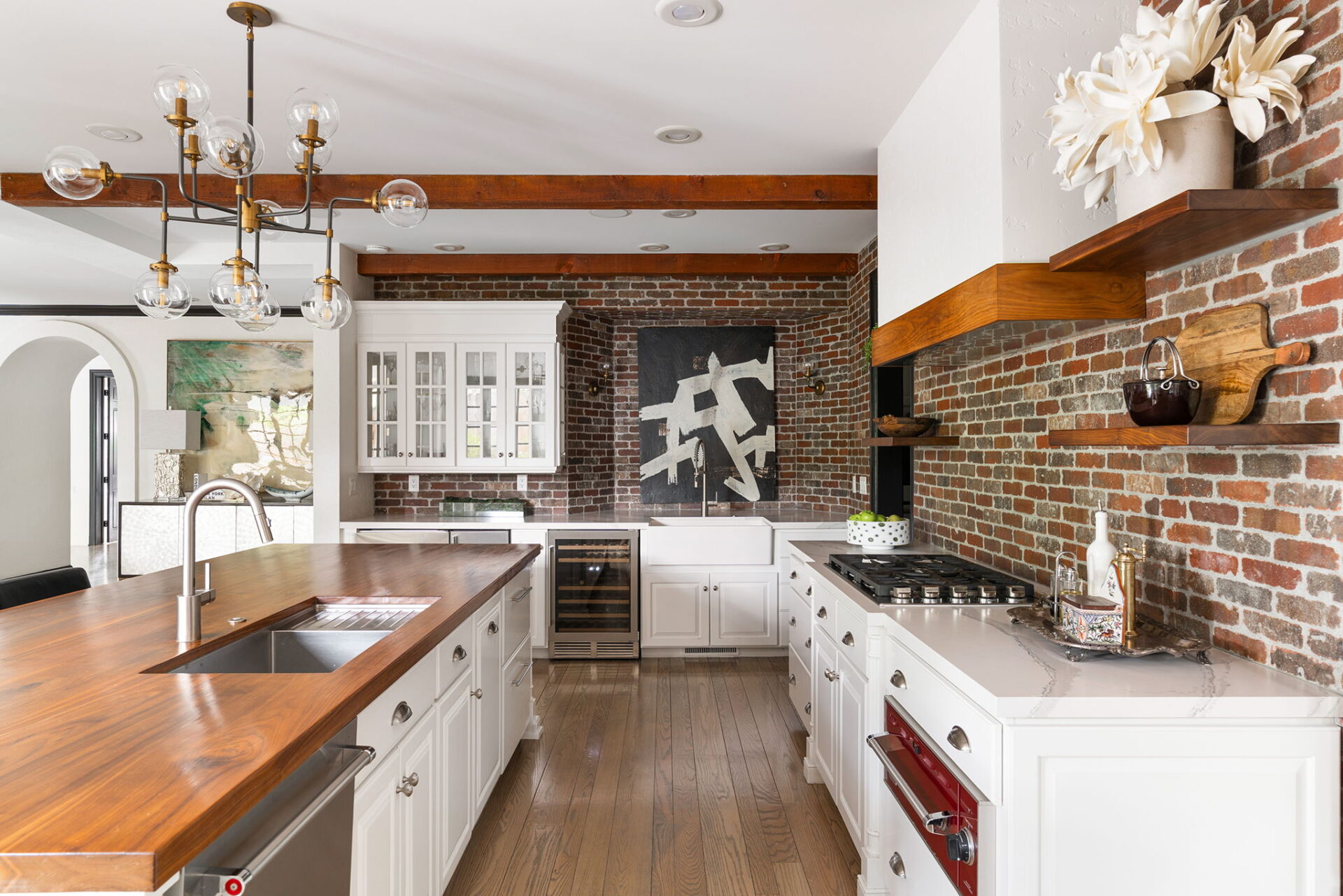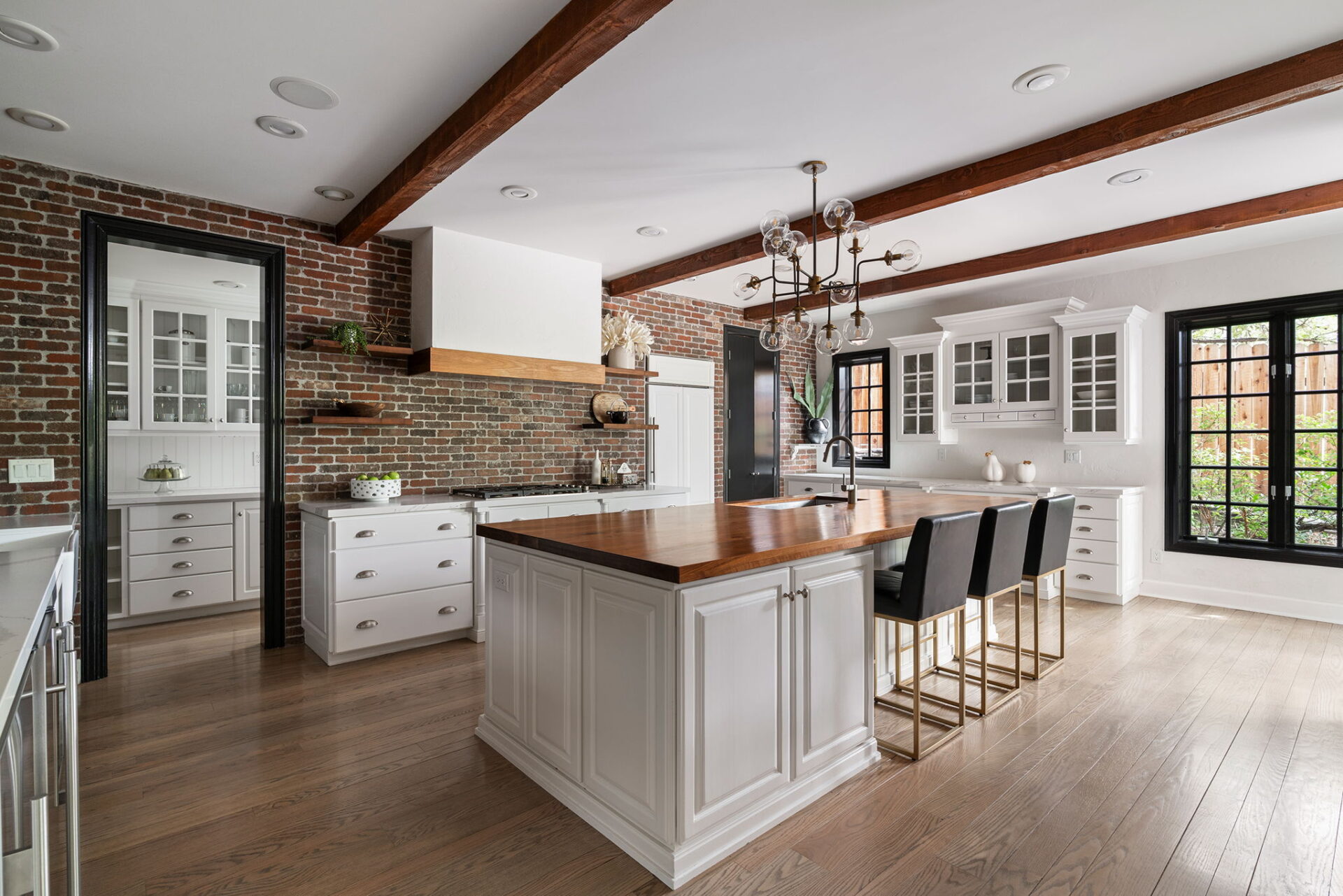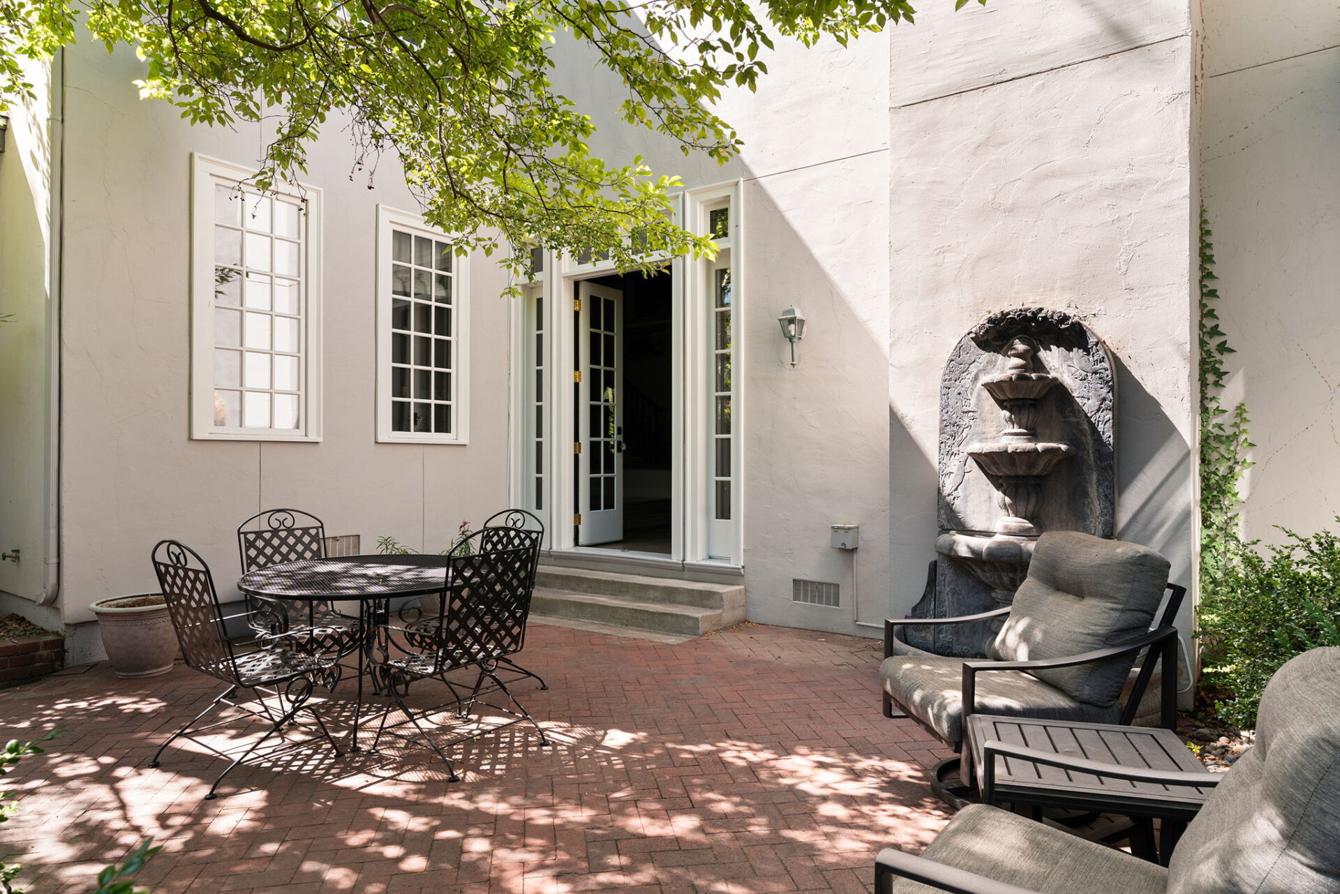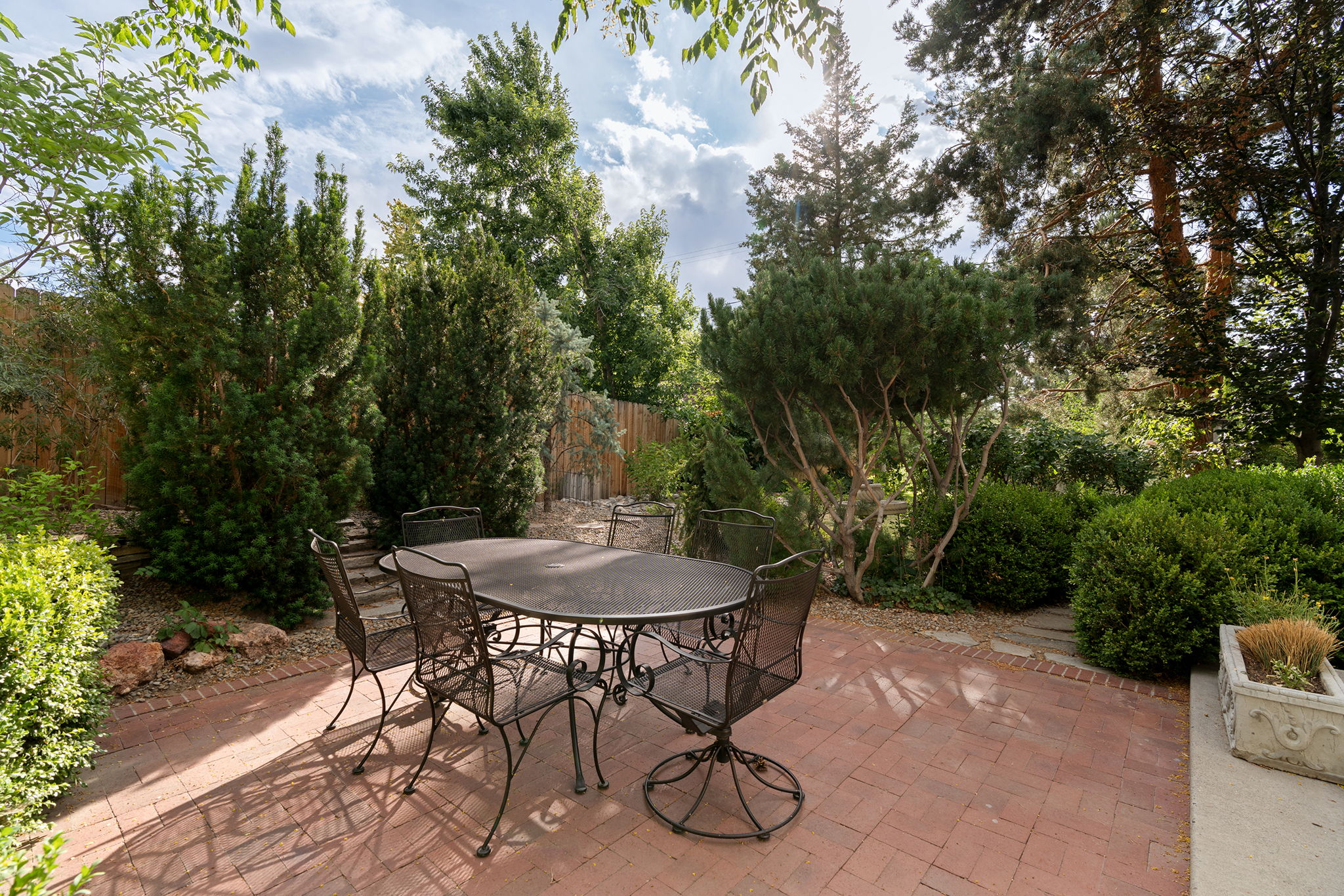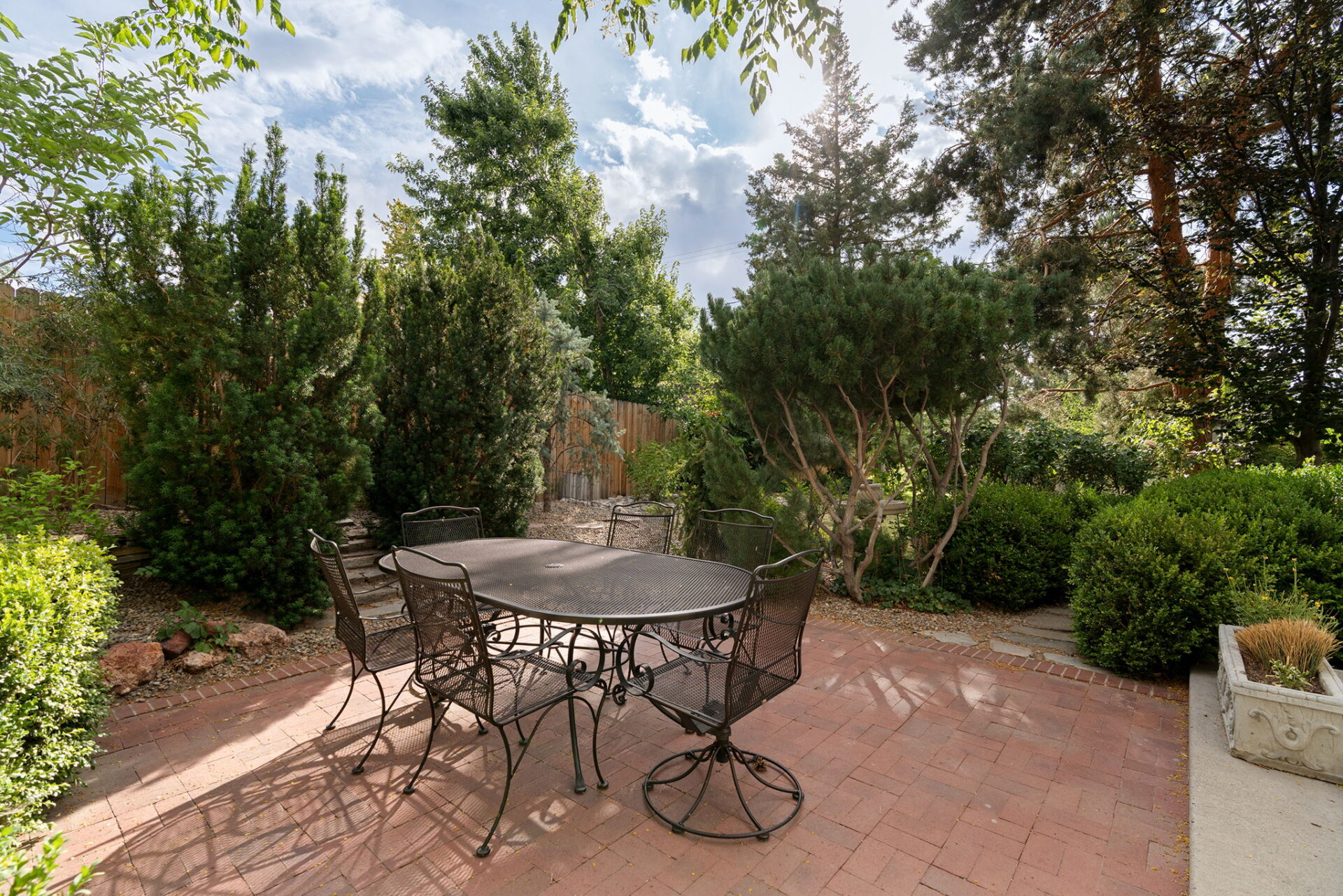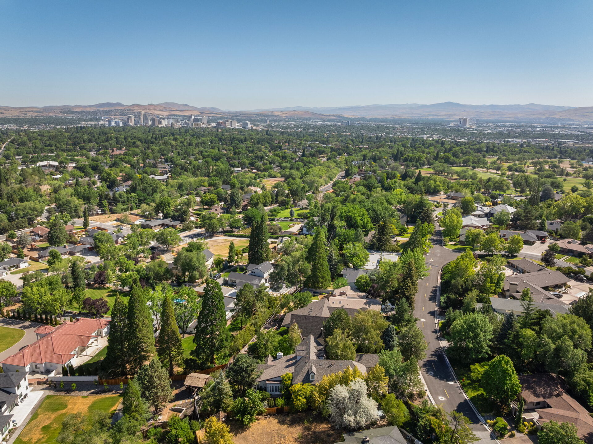 Every detail and corner tells a story, and the right buyer will feel it instantly. From the moment you step into the entry hall, it’s clear this isn’t a typical home. Artisan plaster walls, solid wood doors, and hand-honed finishes whisper of craftsmanship rarely seen in modern builds. The main-level suite has a fireplace, private terrace, radiant heated floors, and a boutique-worthy closet with floor-to-ceiling built-ins for seamless organization. Upstairs, a two-bedroom wing with a shared lounge and dry bar creates a tucked-away apartment-like zone—perfect for teens, guests, or anyone who values autonomy without absence. A second en-suite bedroom on the main level provides long-term flexibility for guests or multigenerational living. Another vaulted-beam bonus room offers space for a home office, media lounge, or creative studio. Vaulted ceilings with exposed beams and an arched fireplace give the living room architectural weight, while dual chandeliers add a subtle elegance. A grid of French doors and windows shapes the room’s rhythm and light. Despite its scale, the space envelops you with a built-in library and corners in which to gather or disappear. Off the living room, a converted garden studio with original brick floors serves as a home gym with views of the lush exterior. The kitchen invites you to make meals, memories, and moods. Brickwork and wood beam ceilings echo the entry and exterior, carrying the home’s language forward with warmth and texture. Custom cabinetry with soft-close drawers surrounds high-end appliances—including dual Sub-Zero refrigerator drawers, Café double ovens, Viking warming drawer, and a U-Line ice maker. A DCS Fisher & Paykel gas range with integrated ventilation stands ready for everything from weeknight dinners to holiday feasts. The dumbwaiter from the garage is a functional delight and a favorite party trick. Even the laundry room and functional closet just off the oversized garage have a point of view. With built-in cabinetry and finishes focused on everyday ease, everyday chores feel like a design moment. The garage features generous dimensions and clean finishes, offering storage and work space beyond parking. Outside, a brick path winds through shaded patios, fruit trees, terraced garden beds, and grassy expanses. Multiple seating areas—some open-air, others tucked beneath eaves—offer places to gather, pause, and exhale. A private courtyard—shaped by layers of landscape and framed by brick—has hosted vow renewals, milestone photos, and other meaningful celebrations over the years. A powered outbuilding with a Dutch door, surrounded by irrigated raised planting beds, anchors a corner of the yard with both purpose and potential. And then there’s the history of Greenridge itself, one of Reno’s original prestige neighborhoods. Developed in the 1930s by Norman Biltz and modeled after luxury subdivisions in Beverly Hills and the East Coast, it once drew names like Doris Duke, Clark Gable, and Marilyn Monroe. Today, the neighborhood has traded celebrity sightings for Halloween magic shows, front-yard wine nights, and strolls with dogs and drinks in tow. People wave from lawn chairs as children roam the curved streets on scooters and bikes, or walk to the nearby golf course for a Coke and fries. Homes like this—so layered, so finished, so cherished—are increasingly rare and even more so in neighborhoods like this.