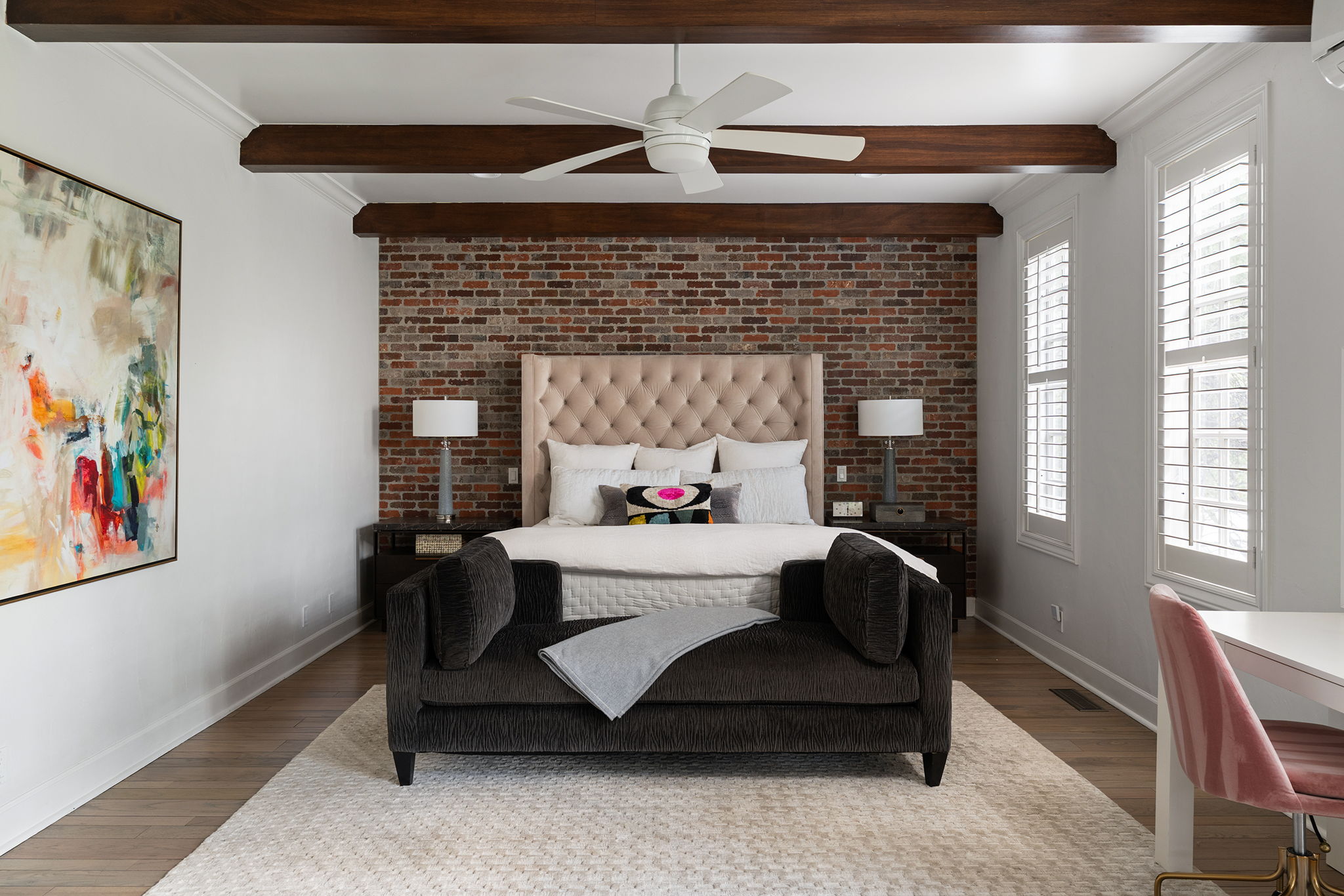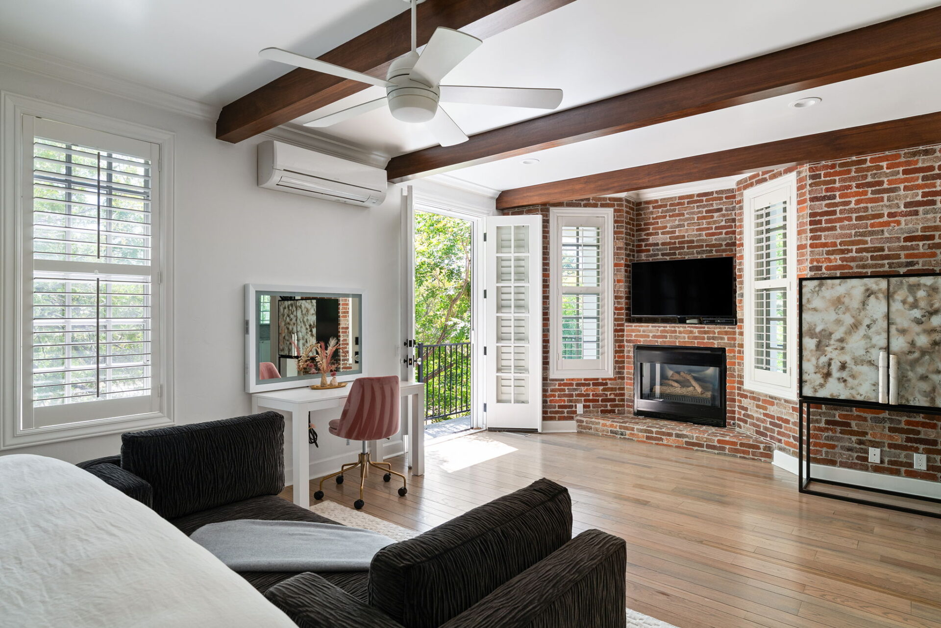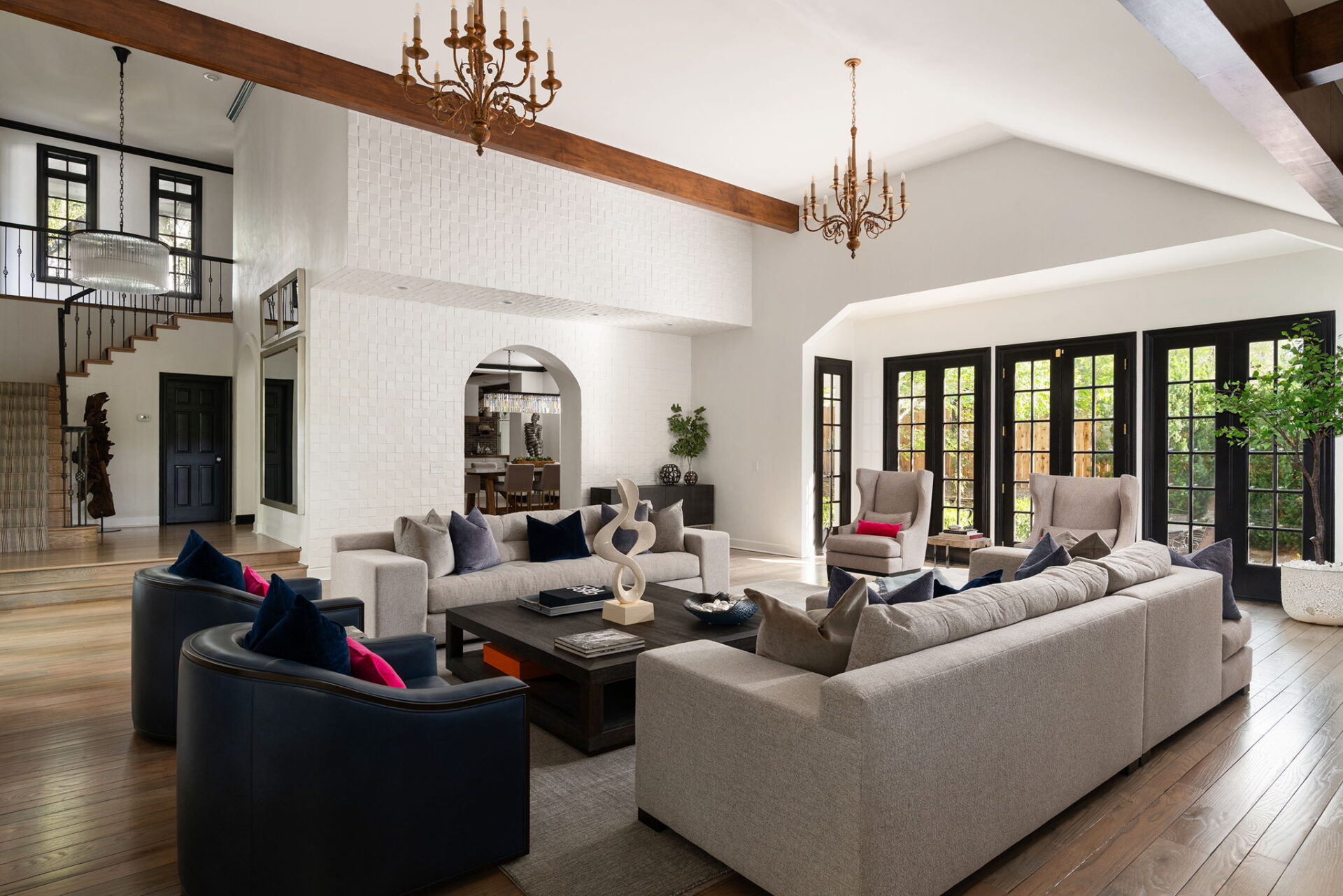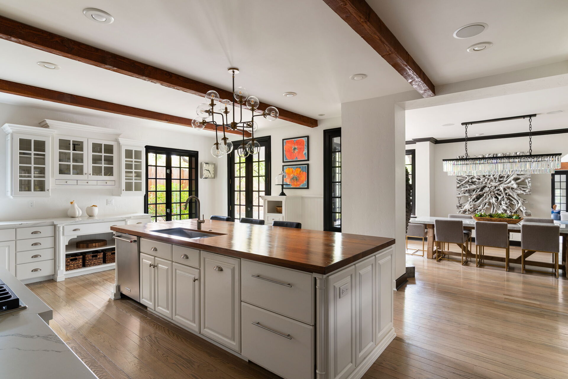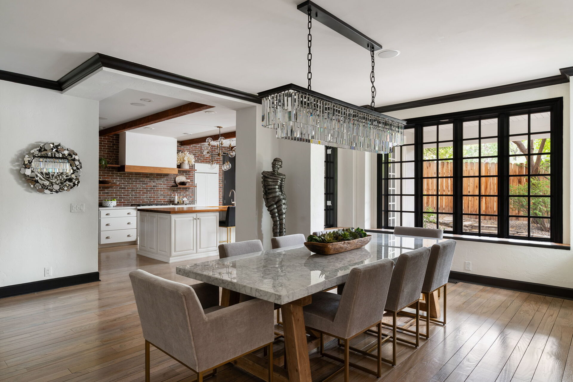 Every detail and corner tells a story, and the right buyer will feel it instantly. From the moment you step into the entry hall, it’s clear this isn’t a typical home. Artisan plaster walls, solid wood doors, and hand-honed finishes whisper of craftsmanship rarely seen in modern builds. The main-level suite has a fireplace, private terrace, radiant heated floors, and a boutique-worthy closet with floor-to-ceiling built-ins for seamless organization. Upstairs, a two-bedroom wing with a shared lounge and dry bar creates a tucked-away apartment-like zone—perfect for teens, guests, or anyone who values autonomy without absence. A second en-suite bedroom on the main level provides long-term flexibility for guests or multigenerational living. Another vaulted-beam bonus room offers space for a home office, media lounge, or creative studio. Vaulted ceilings with exposed beams and an arched fireplace give the living room architectural weight, while dual chandeliers add a subtle elegance. A grid of French doors and windows shapes the room’s rhythm and light. Despite its scale, the space envelops you with a built-in library and corners in which to gather or disappear. Off the living room, a converted garden studio with original brick floors serves as a home gym with views of the lush exterior. The kitchen invites you to make meals, memories, and moods. Brickwork and wood beam ceilings echo the entry and exterior, carrying the home’s language forward with warmth and texture. Custom cabinetry with soft-close drawers surrounds high-end appliances—including dual Sub-Zero refrigerator drawers, Café double ovens, Viking warming drawer, and a U-Line ice maker. A DCS Fisher & Paykel gas range with integrated ventilation stands ready for everything from weeknight dinners to holiday feasts. The dumbwaiter from the garage is a functional delight and a favorite party trick. Even the laundry room and functional closet just off the oversized garage have a point of view. With built-in cabinetry and finishes focused on everyday ease, everyday chores feel like a design moment. The garage features generous dimensions and clean finishes, offering storage and work space beyond parking. Outside, a brick path winds through shaded patios, fruit trees, terraced garden beds, and grassy expanses. Multiple seating areas—some open-air, others tucked beneath eaves—offer places to gather, pause, and exhale. A private courtyard—shaped by layers of landscape and framed by brick—has hosted vow renewals, milestone photos, and other meaningful celebrations over the years. A powered outbuilding with a Dutch door, surrounded by irrigated raised planting beds, anchors a corner of the yard with both purpose and potential. And then there’s the history of Greenridge itself, one of Reno’s original prestige neighborhoods. Developed in the 1930s by Norman Biltz and modeled after luxury subdivisions in Beverly Hills and the East Coast, it once drew names like Doris Duke, Clark Gable, and Marilyn Monroe. Today, the neighborhood has traded celebrity sightings for Halloween magic shows, front-yard wine nights, and strolls with dogs and drinks in tow. People wave from lawn chairs as children roam the curved streets on scooters and bikes, or walk to the nearby golf course for a Coke and fries. Homes like this—so layered, so finished, so cherished—are increasingly rare and even more so in neighborhoods like this.