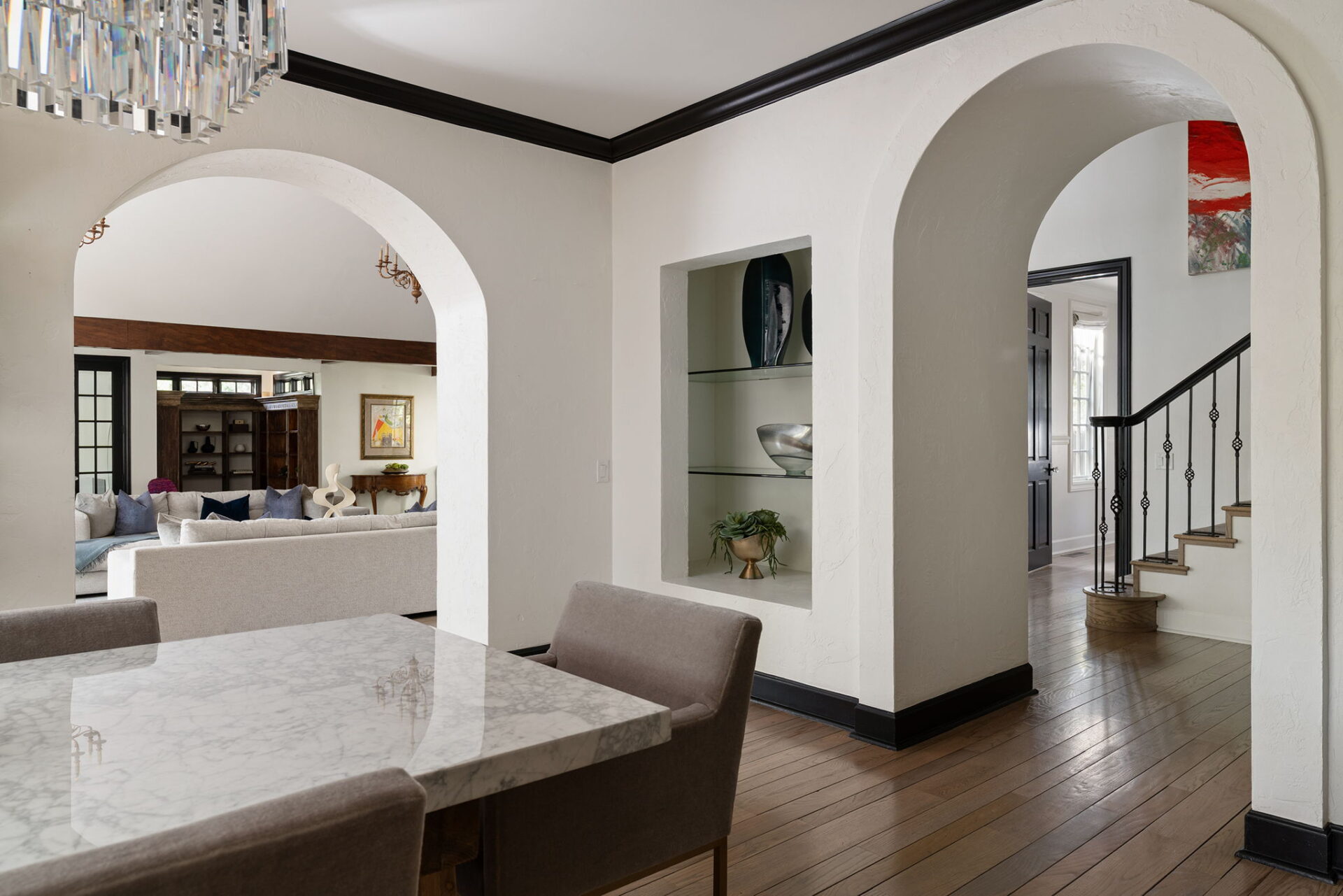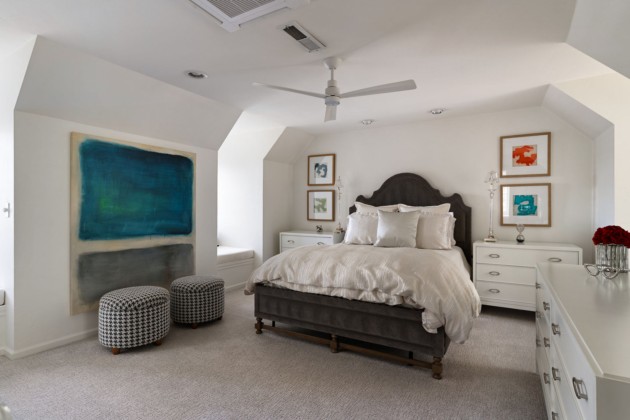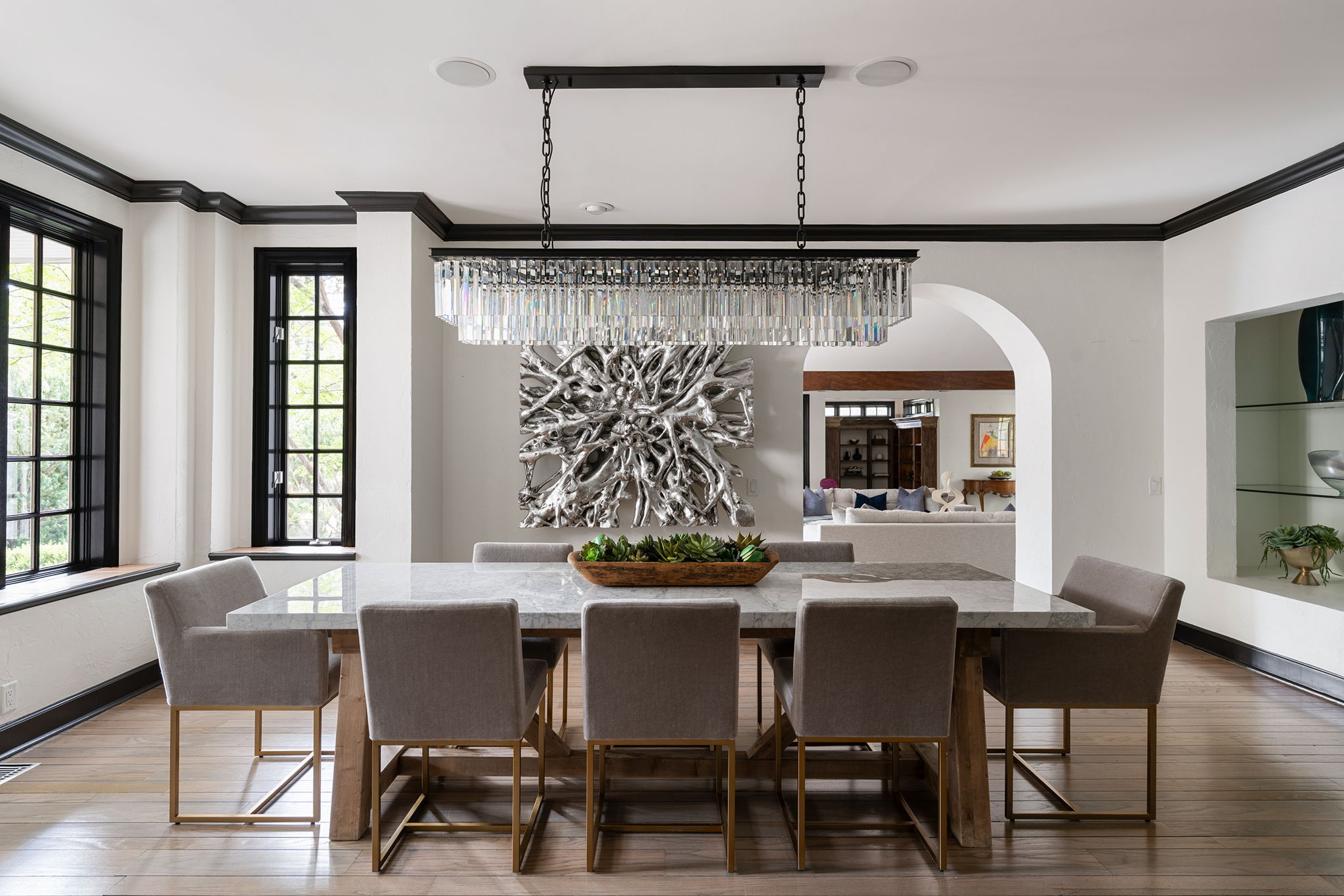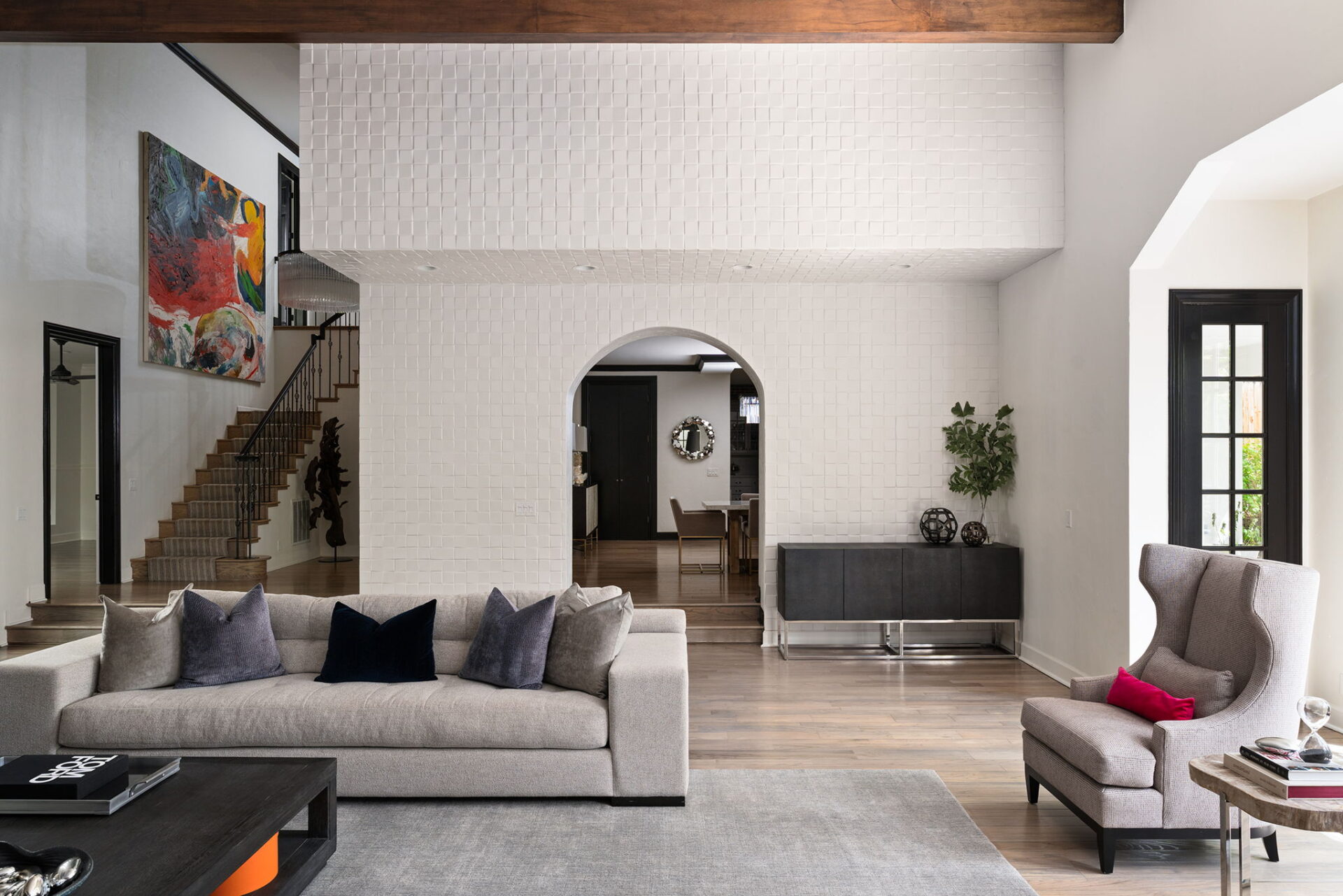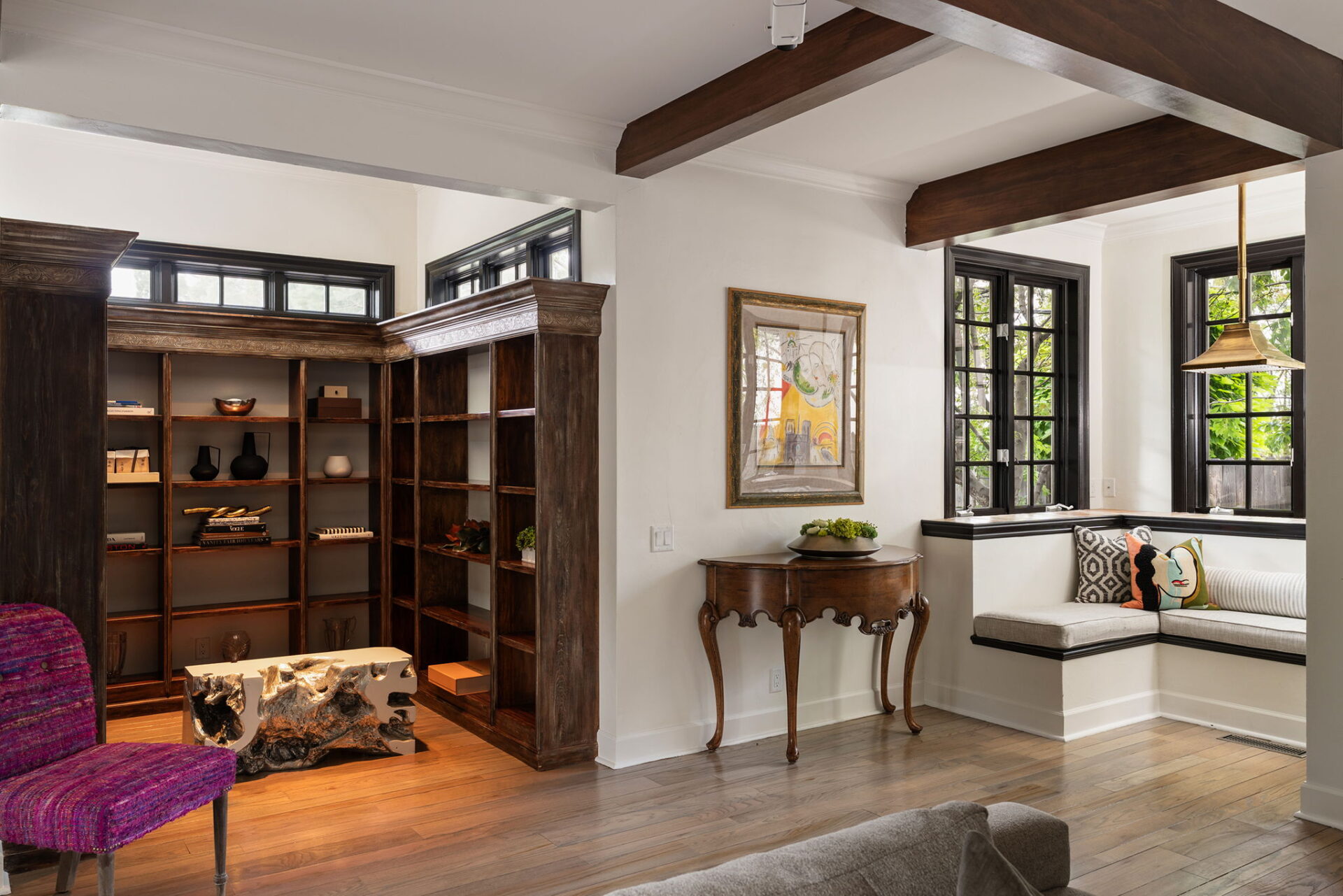 Every detail and corner tells a story, and the right buyer will feel it instantly. From the moment you step into the entry hall, it’s clear this isn’t a typical home. Artisan plaster walls, solid wood doors, and hand-honed finishes whisper of craftsmanship rarely seen in modern builds. The main-level suite has a fireplace, private terrace, radiant heated floors, and a boutique-worthy closet with floor-to-ceiling built-ins for seamless organization. Upstairs, a two-bedroom wing with a shared lounge and dry bar creates a tucked-away apartment-like zone—perfect for teens, guests, or anyone who values autonomy without absence. A second en-suite bedroom on the main level provides long-term flexibility for guests or multigenerational living. Another vaulted-beam bonus room offers space for a home office, media lounge, or creative studio. Vaulted ceilings with exposed beams and an arched fireplace give the living room architectural weight, while dual chandeliers add a subtle elegance. A grid of French doors and windows shapes the room’s rhythm and light. Despite its scale, the space envelops you with a built-in library and corners in which to gather or disappear. Off the living room, a converted garden studio with original brick floors serves as a home gym with views of the lush exterior. The kitchen invites you to make meals, memories, and moods. Brickwork and wood beam ceilings echo the entry and exterior, carrying the home’s language forward with warmth and texture. Custom cabinetry with soft-close drawers surrounds high-end appliances—including dual Sub-Zero refrigerator drawers, Café double ovens, Viking warming drawer, and a U-Line ice maker. A DCS Fisher & Paykel gas range with integrated ventilation stands ready for everything from weeknight dinners to holiday feasts. The dumbwaiter from the garage is a functional delight and a favorite party trick. Even the laundry room and functional closet just off the oversized garage have a point of view. With built-in cabinetry and finishes focused on everyday ease, everyday chores feel like a design moment. The garage features generous dimensions and clean finishes, offering storage and work space beyond parking. Outside, a brick path winds through shaded patios, fruit trees, terraced garden beds, and grassy expanses. Multiple seating areas—some open-air, others tucked beneath eaves—offer places to gather, pause, and exhale. A private courtyard—shaped by layers of landscape and framed by brick—has hosted vow renewals, milestone photos, and other meaningful celebrations over the years. A powered outbuilding with a Dutch door, surrounded by irrigated raised planting beds, anchors a corner of the yard with both purpose and potential. And then there’s the history of Greenridge itself, one of Reno’s original prestige neighborhoods. Developed in the 1930s by Norman Biltz and modeled after luxury subdivisions in Beverly Hills and the East Coast, it once drew names like Doris Duke, Clark Gable, and Marilyn Monroe. Today, the neighborhood has traded celebrity sightings for Halloween magic shows, front-yard wine nights, and strolls with dogs and drinks in tow. People wave from lawn chairs as children roam the curved streets on scooters and bikes, or walk to the nearby golf course for a Coke and fries. Homes like this—so layered, so finished, so cherished—are increasingly rare and even more so in neighborhoods like this.