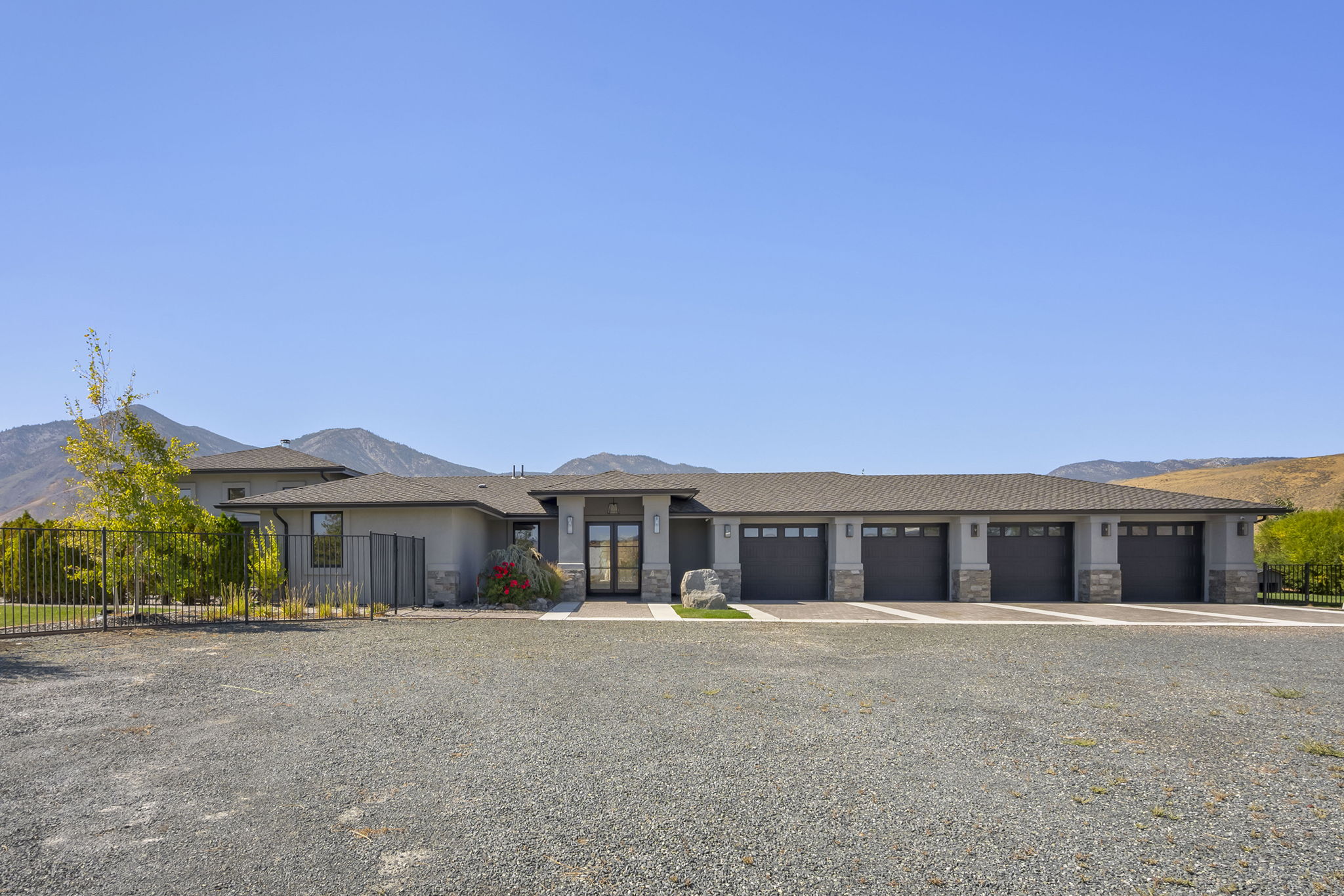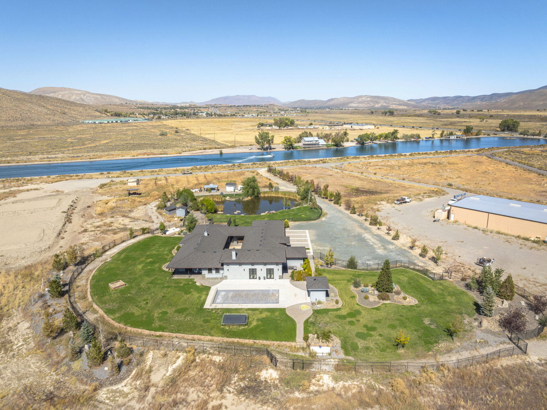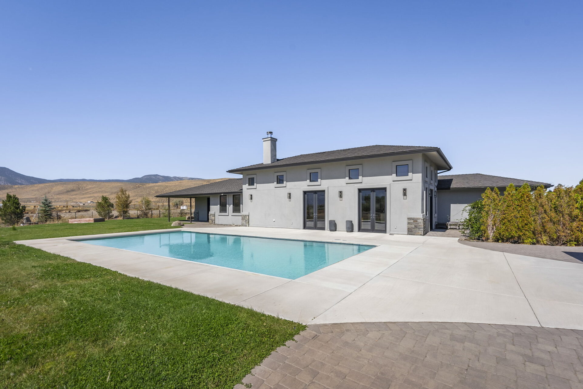 Welcome to 2960 Oasis Springs Rd, a breathtaking 19-acre estate in the heart of Minden, NV, where luxury and wide-open serenity converge. This extraordinary property offers a rare combination of space, privacy, and panoramic Sierra Nevada views, creating a true sanctuary just minutes from town conveniences. The thoughtfully designed single-level residence features four spacious bedrooms and three-and-a-half bathrooms, blending comfort with elegance. Tall ceilings, expansive windows, and open living areas flood the home with natural light while framing dramatic mountain vistas at every turn. Highlights include a gourmet kitchen, dedicated office, cozy theater/bonus room, and a versatile gym/storage space—crafted to support both everyday living and special moments. A remarkable 9,800 sq. ft. detached building provides endless opportunities, whether for a car collection, workshop, or creative pursuits, ensuring this property adapts to your lifestyle. Step outside and embrace the outdoors: an inviting in-ground pool, covered patio, serene ponds, mature landscaping, and expansive grounds set the stage for relaxation and entertainment. Additional features—a chicken coop, dog run, and abundant parking—enhance both practicality and charm. From sweeping views to unmatched space, this estate is more than a home—it’s a lifestyle. 2960 Oasis Springs Rd invites you to enjoy luxury, freedom, and endless horizons in one of Northern Nevada’s most picturesque settings.