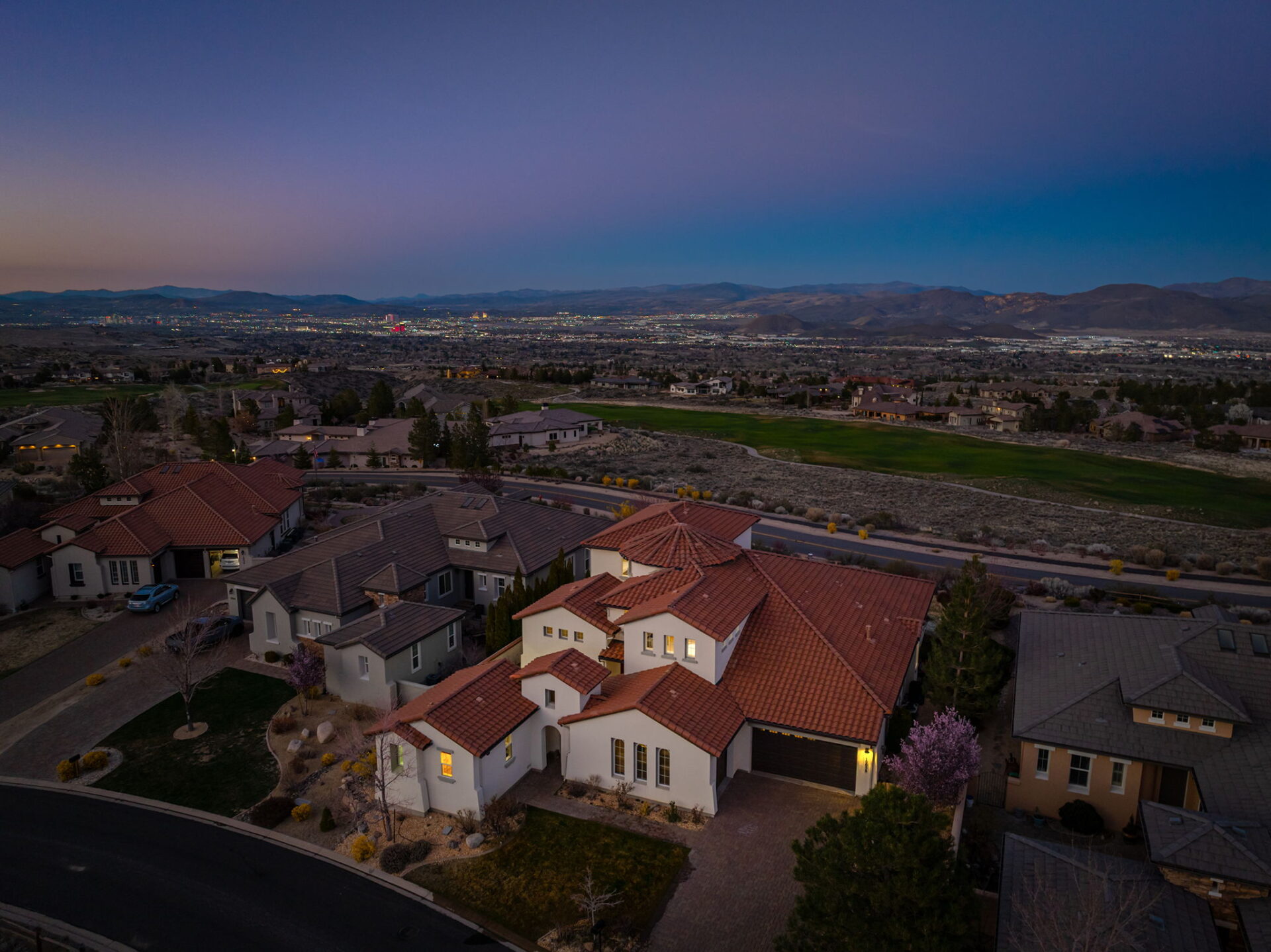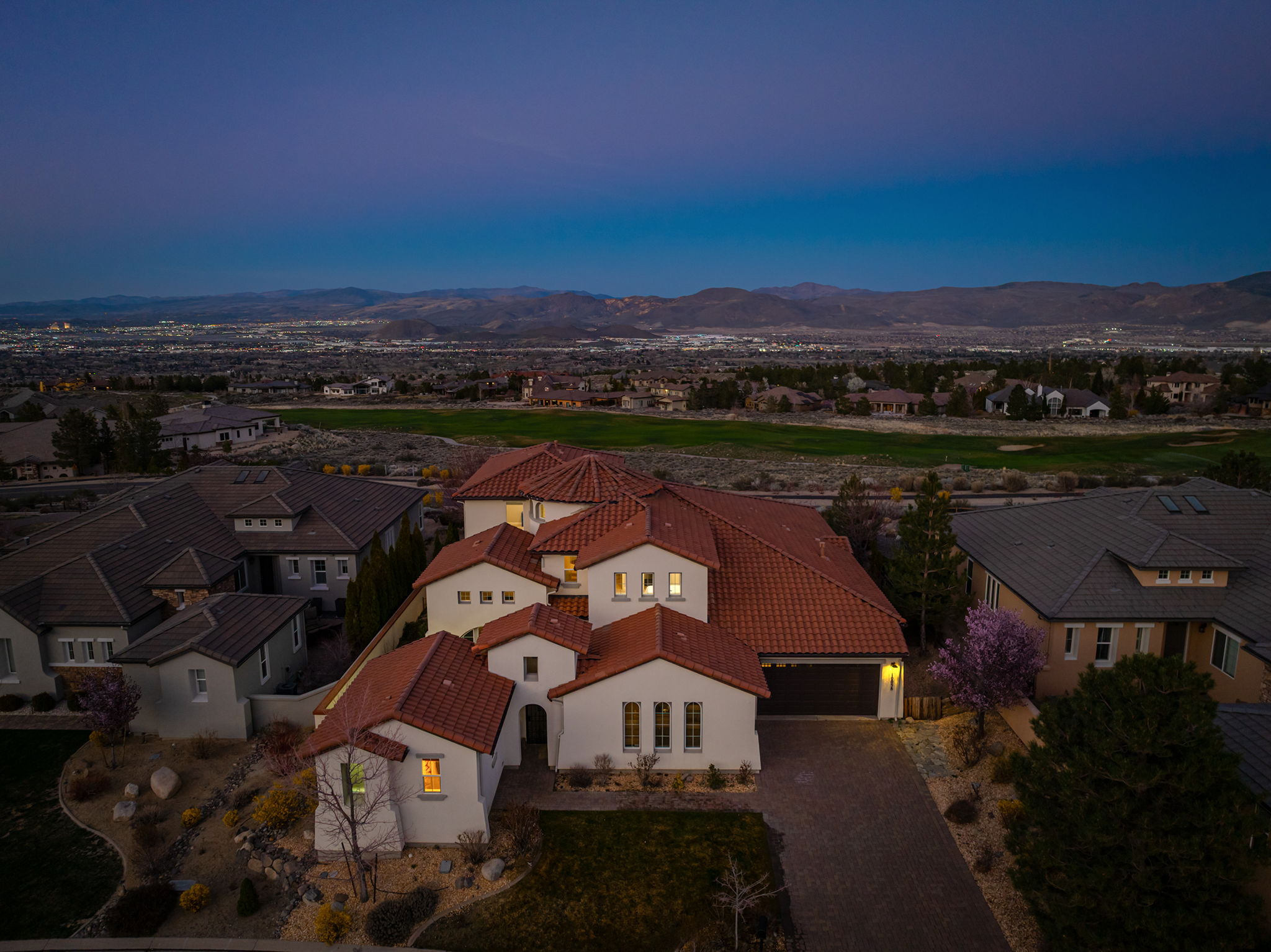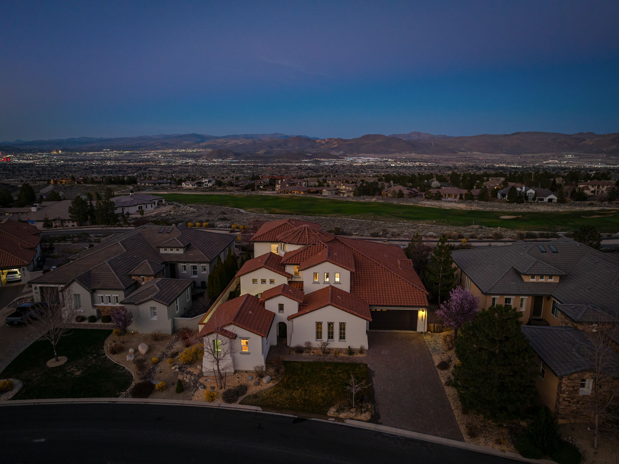 Perched within the prestigious ArrowCreek community, this exceptional estate showcases breathtaking valley, city, and golf course views, offering a perfect blend of luxury, comfort, and functionality. From the moment you arrive, the inviting enclosed front entry sets the tone for the elegance found throughout the home. Designed with entertaining and everyday living in mind, the expansive open floor plan features a large center island kitchen, a spacious walk-in pantry, butler’s pantry, and a built-in bar—ideal for hosting gatherings of any size. A full laundry room with a sink and ample cabinetry adds convenience and practicality. The main-level primary suite is a true retreat, complete with new carpet and stunning city views. An additional bedroom and full bath on the main floor provide flexibility, while the detached casita offers a private space perfect for guests, a home office, or gym. Upstairs, the home continues to impress with three additional bedrooms and full baths, along with a versatile loft and dedicated study area—perfect for homework, creative projects, or a cozy reading nook. A spacious game room downstairs creates the ultimate hangout space for family and friends. Step outside to enjoy the larger yard, ideal for relaxing or entertaining, complete with a private hot tub to take in the incredible surroundings. Additional highlights include a 3-car garage and access to ArrowCreek’s resort-style HOA amenities, including a pool, fitness center, tennis courts, walking paths, hot tub, and clubhouse. Golf and social memberships are also available at The Club at ArrowCreek. This home offers the perfect combination of elevated views, thoughtful design, and exceptional lifestyle amenities—truly a place to call home.