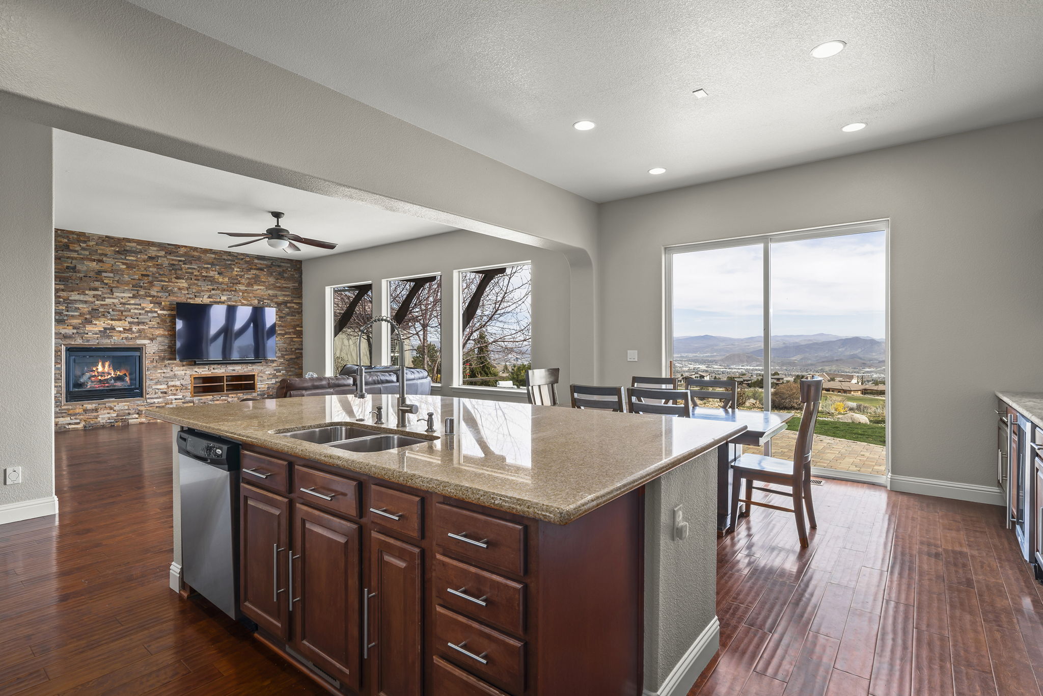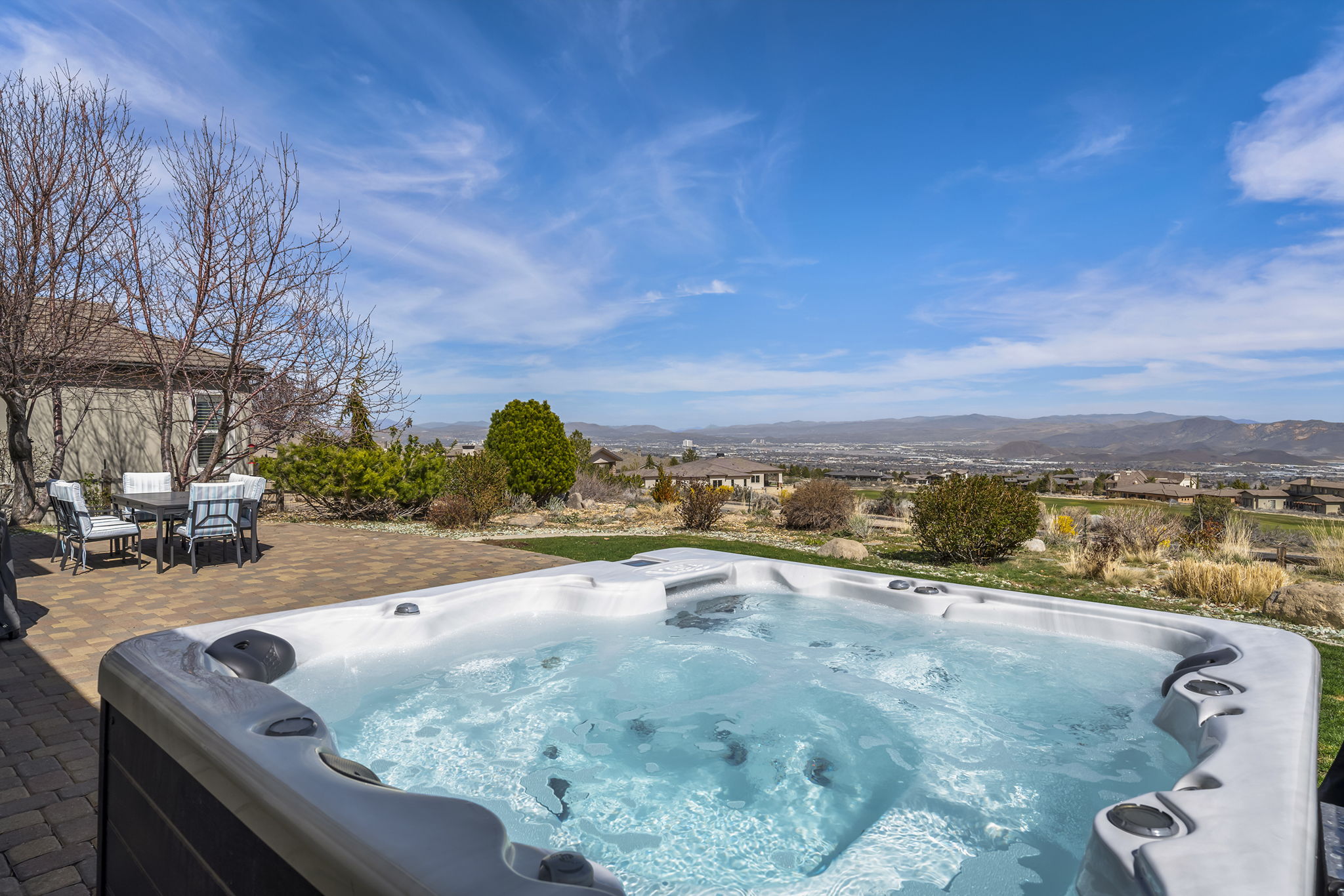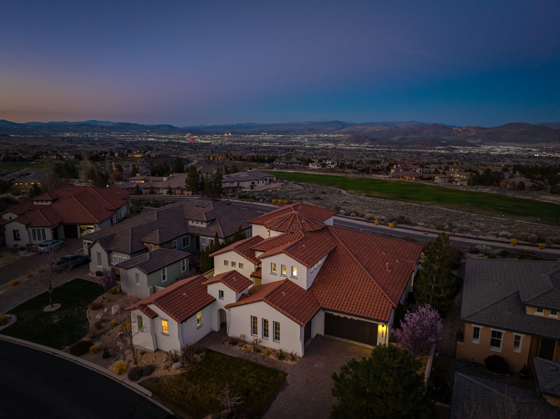 Perched within the prestigious ArrowCreek community, this exceptional estate showcases breathtaking valley, city, and golf course views, offering a perfect blend of luxury, comfort, and functionality. From the moment you arrive, the inviting enclosed front entry sets the tone for the elegance found throughout the home. Designed with entertaining and everyday living in mind, the expansive open floor plan features a large center island kitchen, a spacious walk-in pantry, butler’s pantry, and a built-in bar—ideal for hosting gatherings of any size. A full laundry room with a sink and ample cabinetry adds convenience and practicality. The main-level primary suite is a true retreat, complete with new carpet and stunning city views. An additional bedroom and full bath on the main floor provide flexibility, while the detached casita offers a private space perfect for guests, a home office, or gym. Upstairs, the home continues to impress with three additional bedrooms and full baths, along with a versatile loft and dedicated study area—perfect for homework, creative projects, or a cozy reading nook. A spacious game room downstairs creates the ultimate hangout space for family and friends. Step outside to enjoy the larger yard, ideal for relaxing or entertaining, complete with a private hot tub to take in the incredible surroundings. Additional highlights include a 3-car garage and access to ArrowCreek’s resort-style HOA amenities, including a pool, fitness center, tennis courts, walking paths, hot tub, and clubhouse. Golf and social memberships are also available at The Club at ArrowCreek. This home offers the perfect combination of elevated views, thoughtful design, and exceptional lifestyle amenities—truly a place to call home.