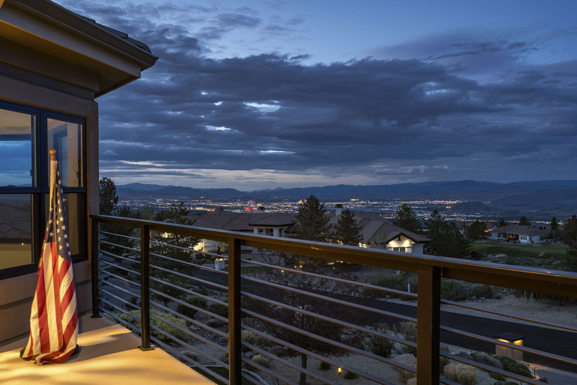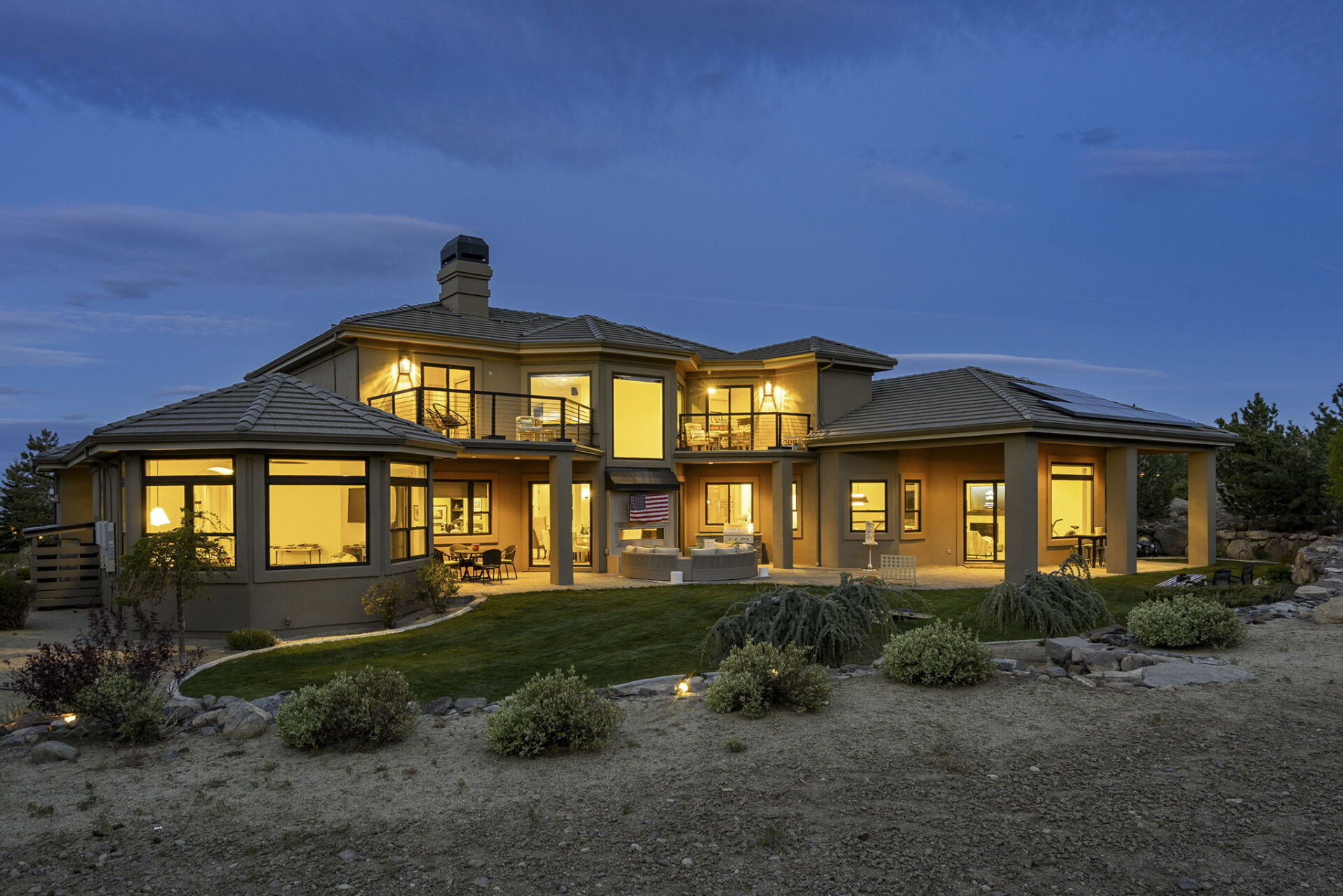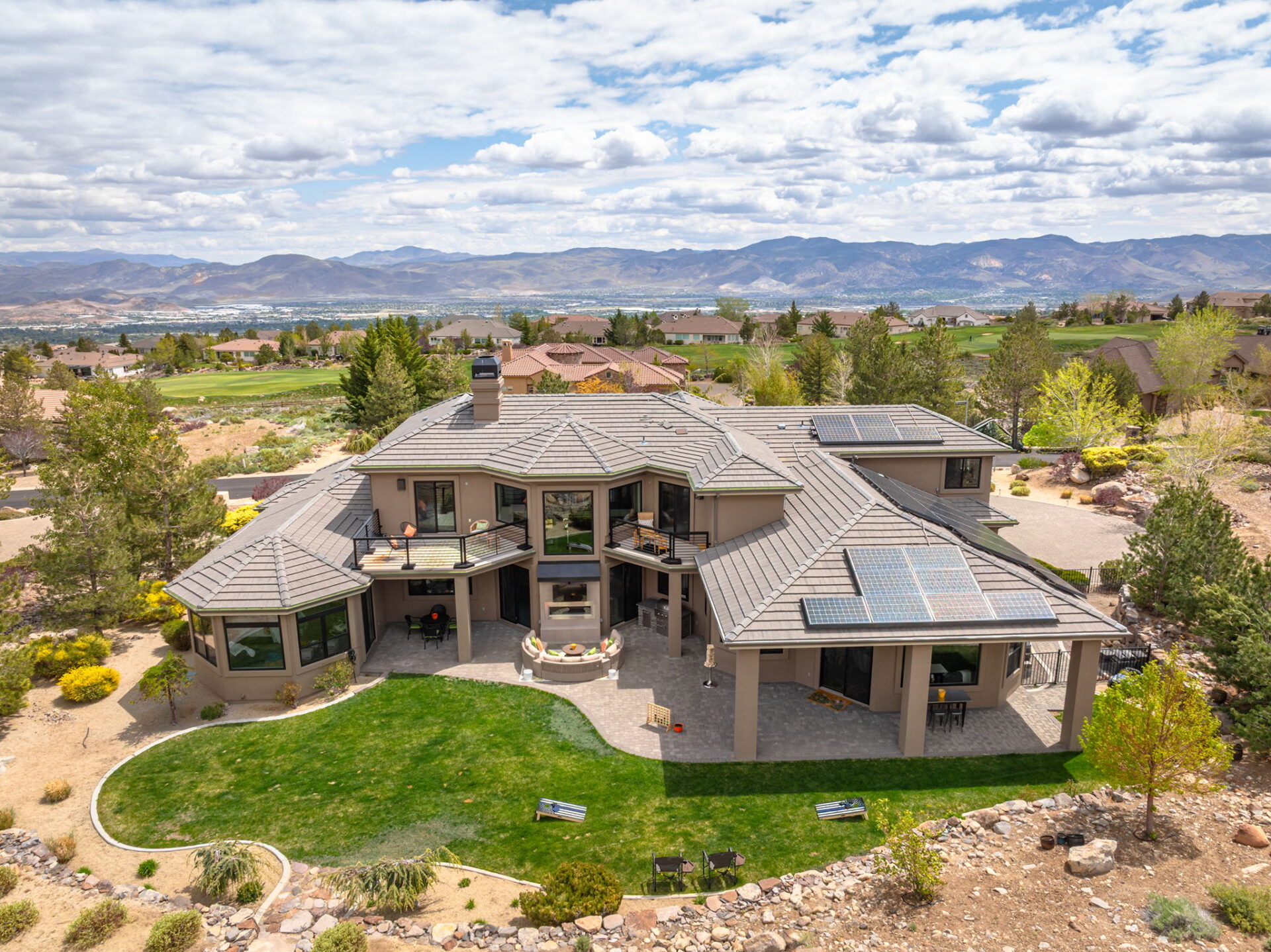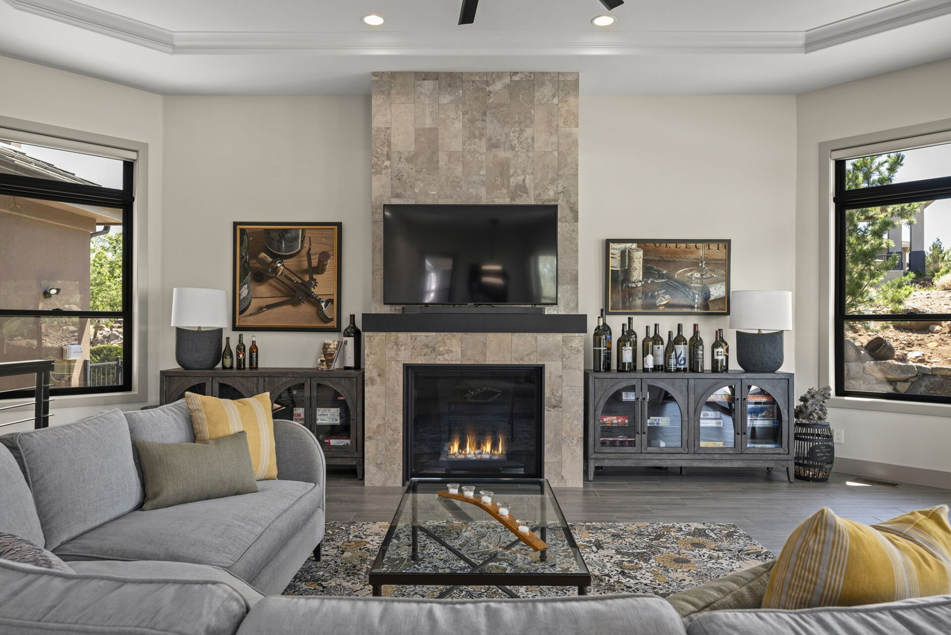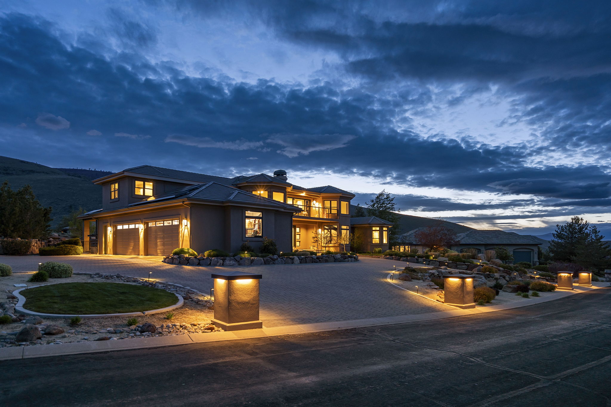 Step into 6177 North Featherstone, a residence reimagined from the ground up to embody the sophistication of design & the effortless grace of High Desert living. Nestled within the prestigious ArrowCreek community, this fully remodeled estate offers 5,586 square feet of inspired living on a full acre. With sweeping views across the Sierra Nevada & Mt. Rose mountains, lush golf fairways, & sparkling city lights, every angle of this home tells a story of elegance & connection to its surroundings. The owners began their remodel with purpose: to create a seamless flow, where form meets function & every detail enhances life, leisure, & entertaining. Walls were softened, pillars removed, & spaces reimagined to capture natural light & open sightlines. Modern finishes & thoughtful design balance grandeur with comfort. A finished basement & upstairs library added 312 square feet, expanding versatility without sacrificing intimacy. Arrival makes an unforgettable impression with a custom 9×6 steel pivot door by Modern Steel Doors of Arizona. Inside, a light-filled foyer leads to an expanded balcony, where sweeping golf course & city views set the stage for sunrise coffee or starlit evenings. At the heart of the home, the Dining Room has been elevated into a dramatic entertaining space with soaring two-story ceilings & a two-sided fireplace connecting indoors & outdoors. Andersen sliding doors open to patios & gardens, while striking Sonneman fixtures & art lighting create ambiance. Whether hosting holidays or intimate dinners, the space adapts with ease. The Main En Suite is a private retreat, complete with custom California Closets, cove lighting, & remote-controlled Hunter Douglas shades. The spa-inspired bath showcases a freestanding soaking tub beneath chandeliers, a dual-entry steam shower with rain head & sprayers, natural stone floors, shimmering glass tile, & custom cabinetry with quartz counters & lighted mirrors. The Great Room centers on a custom travertine fireplace with black quartz mantel, complemented by wood-grain tile floors, a Minka Aire fan, & integrated Sonos audio. The Kitchen & Nook feature a Wolf 48″ range, Sub-Zero refrigerator, & a central island with seating. The Games Room delights with Hubbardton Forge lighting, speakers, & motorized shades. A dramatic staircase of black-stained oak & iron railings rises beneath a cascading Sonneman chandelier. Upstairs, the new Library offers custom bookcases, club seating, & a 12-foot Andersen glass wall opening to a balcony with panoramic views. Four additional en suite bedrooms provide privacy, storage, & character. Outdoors, multiple patios, a two-sided fireplace, & landscaped grounds enhanced with solar lighting create serene gathering spaces. Modern systems include central HVAC with three units, radiant heated floors, Tesla solar panels, Cat-6 wiring, Sonos audio, & a four-car garage with EV charger. This estate is more than a home—it is a lifestyle. From morning coffee on the balcony to wine in the library at dusk, from quiet family nights to grand celebrations, this residence harmonizes elegance, comfort, & versatility. Every space has been thoughtfully crafted, every view a reminder of Reno’s beauty. This is a rare opportunity to own a fully realized vision of home, where luxury & ease coexist seamlessly.