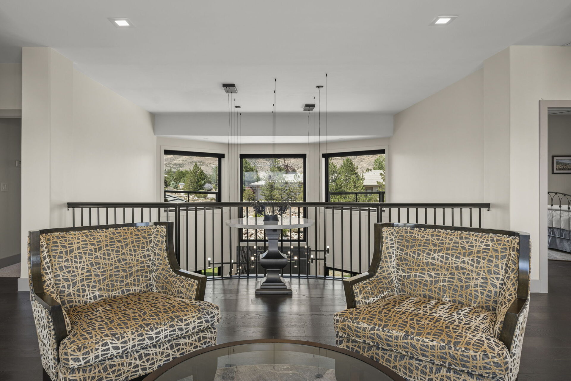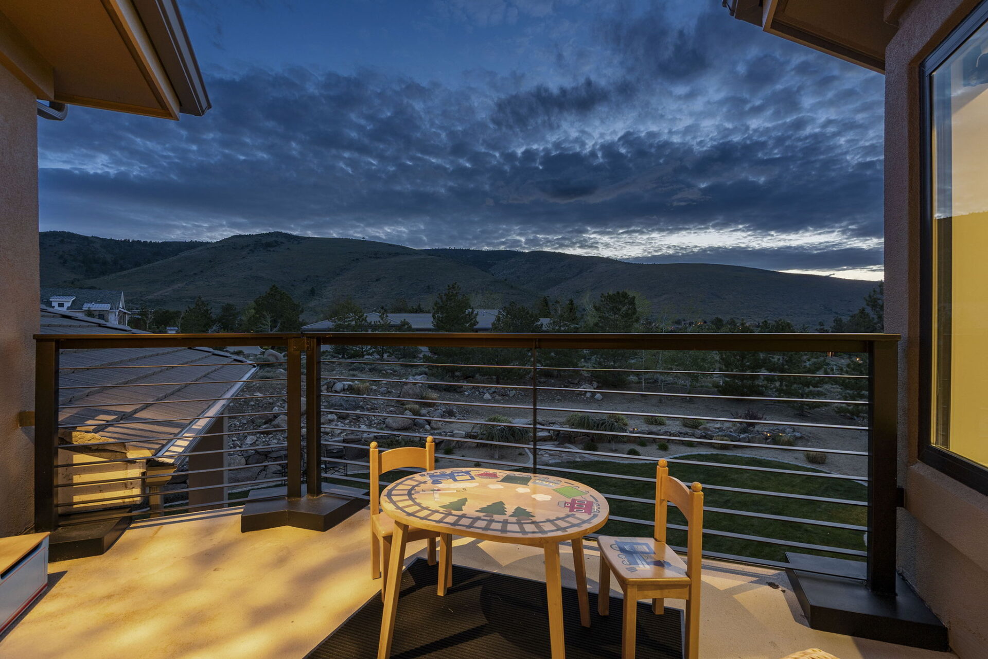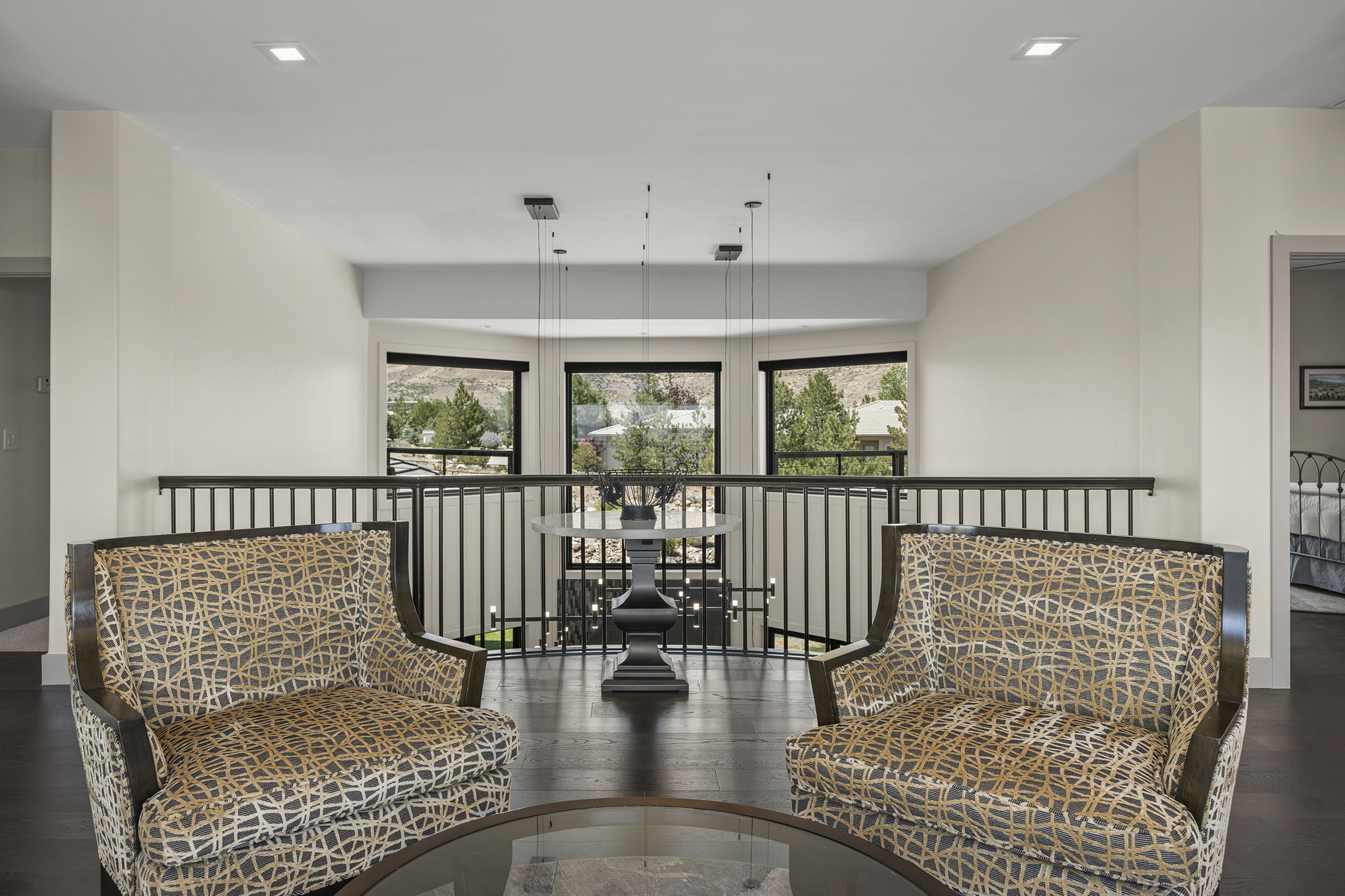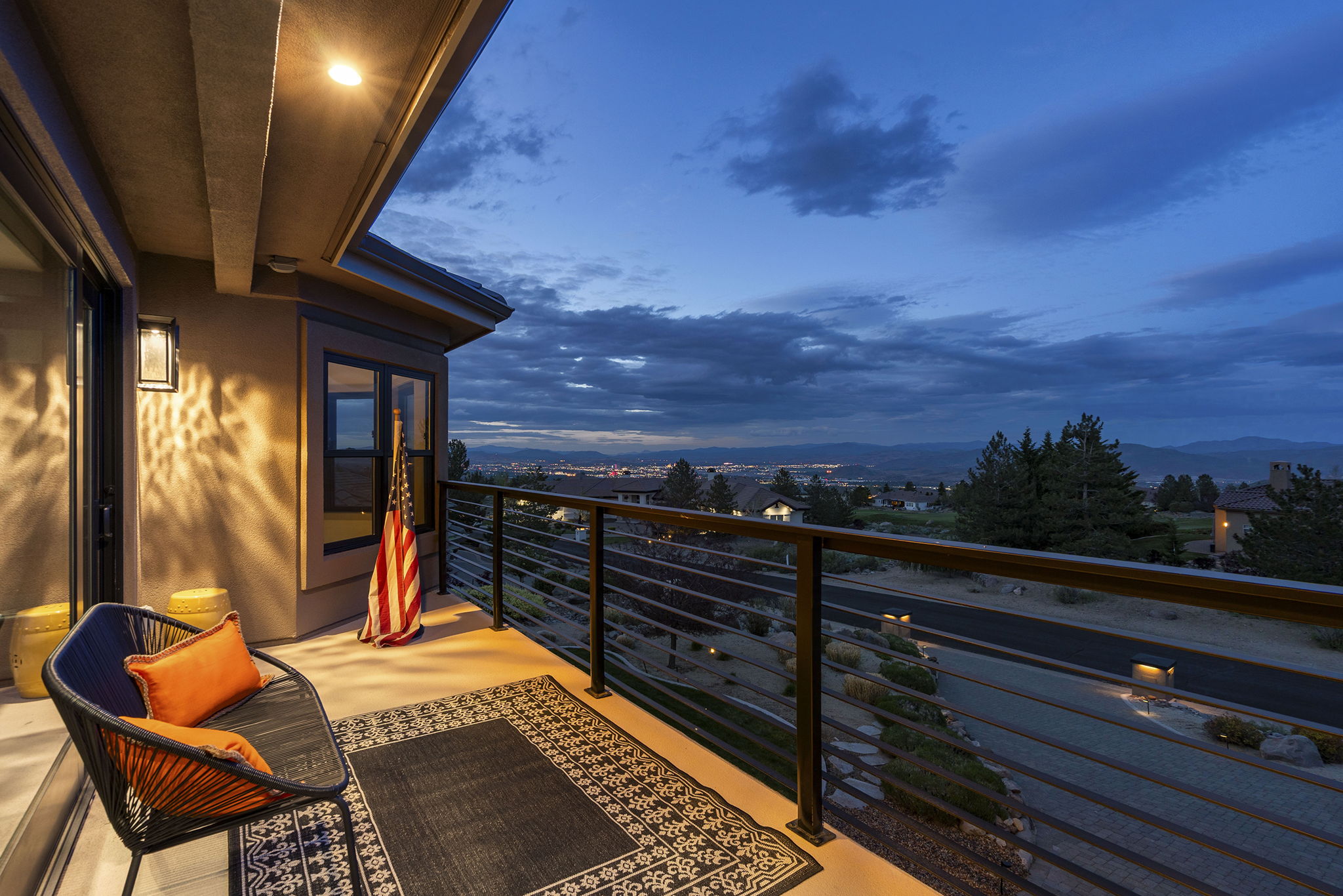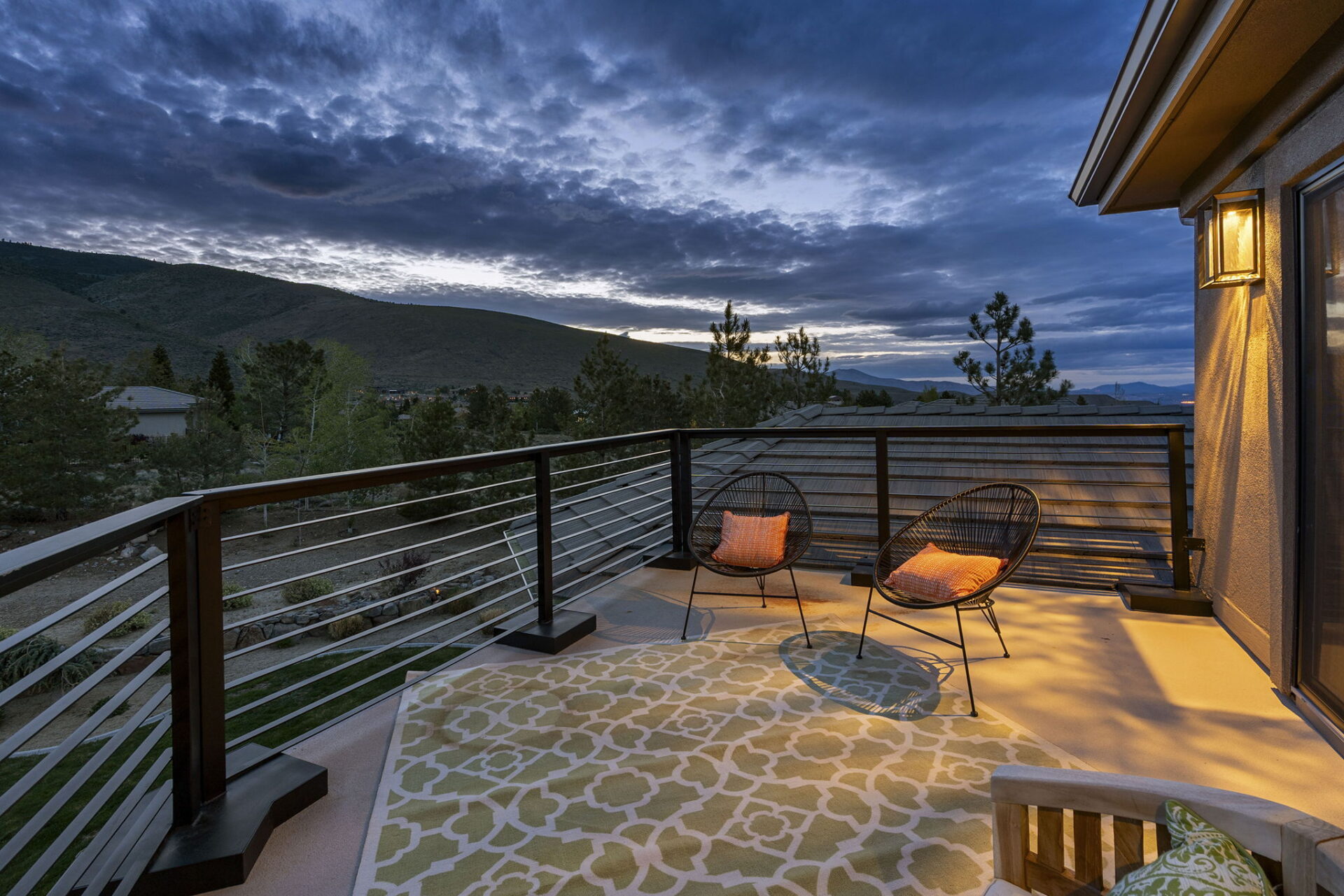 Step into 6177 North Featherstone, a residence reimagined from the ground up to embody the sophistication of design & the effortless grace of High Desert living. Nestled within the prestigious ArrowCreek community, this fully remodeled estate offers 5,586 square feet of inspired living on a full acre. With sweeping views across the Sierra Nevada & Mt. Rose mountains, lush golf fairways, & sparkling city lights, every angle of this home tells a story of elegance & connection to its surroundings. The owners began their remodel with purpose: to create a seamless flow, where form meets function & every detail enhances life, leisure, & entertaining. Walls were softened, pillars removed, & spaces reimagined to capture natural light & open sightlines. Modern finishes & thoughtful design balance grandeur with comfort. A finished basement & upstairs library added 312 square feet, expanding versatility without sacrificing intimacy. Arrival makes an unforgettable impression with a custom 9×6 steel pivot door by Modern Steel Doors of Arizona. Inside, a light-filled foyer leads to an expanded balcony, where sweeping golf course & city views set the stage for sunrise coffee or starlit evenings. At the heart of the home, the Dining Room has been elevated into a dramatic entertaining space with soaring two-story ceilings & a two-sided fireplace connecting indoors & outdoors. Andersen sliding doors open to patios & gardens, while striking Sonneman fixtures & art lighting create ambiance. Whether hosting holidays or intimate dinners, the space adapts with ease. The Main En Suite is a private retreat, complete with custom California Closets, cove lighting, & remote-controlled Hunter Douglas shades. The spa-inspired bath showcases a freestanding soaking tub beneath chandeliers, a dual-entry steam shower with rain head & sprayers, natural stone floors, shimmering glass tile, & custom cabinetry with quartz counters & lighted mirrors. The Great Room centers on a custom travertine fireplace with black quartz mantel, complemented by wood-grain tile floors, a Minka Aire fan, & integrated Sonos audio. The Kitchen & Nook feature a Wolf 48″ range, Sub-Zero refrigerator, & a central island with seating. The Games Room delights with Hubbardton Forge lighting, speakers, & motorized shades. A dramatic staircase of black-stained oak & iron railings rises beneath a cascading Sonneman chandelier. Upstairs, the new Library offers custom bookcases, club seating, & a 12-foot Andersen glass wall opening to a balcony with panoramic views. Four additional en suite bedrooms provide privacy, storage, & character. Outdoors, multiple patios, a two-sided fireplace, & landscaped grounds enhanced with solar lighting create serene gathering spaces. Modern systems include central HVAC with three units, radiant heated floors, Tesla solar panels, Cat-6 wiring, Sonos audio, & a four-car garage with EV charger. This estate is more than a home—it is a lifestyle. From morning coffee on the balcony to wine in the library at dusk, from quiet family nights to grand celebrations, this residence harmonizes elegance, comfort, & versatility. Every space has been thoughtfully crafted, every view a reminder of Reno’s beauty. This is a rare opportunity to own a fully realized vision of home, where luxury & ease coexist seamlessly.