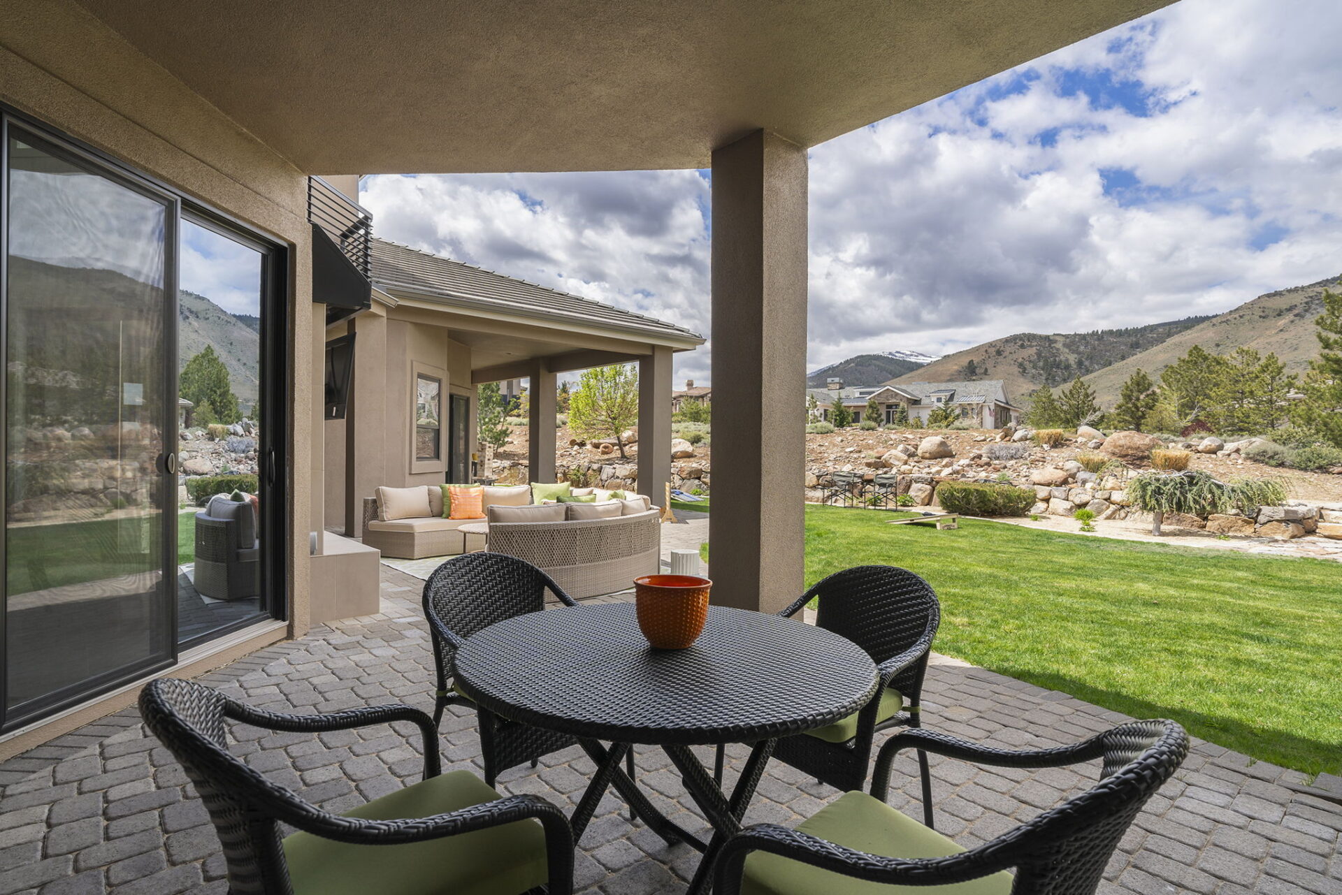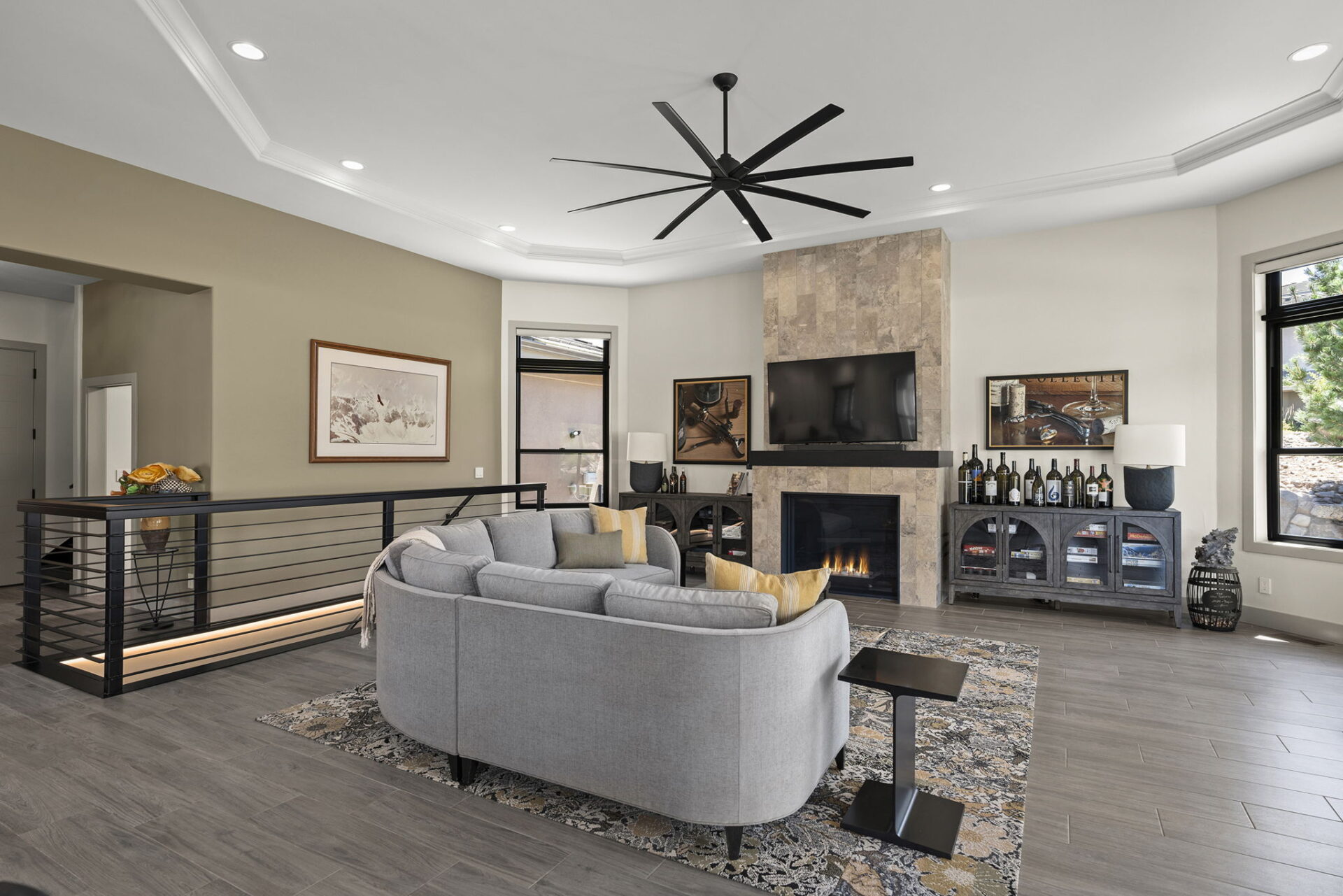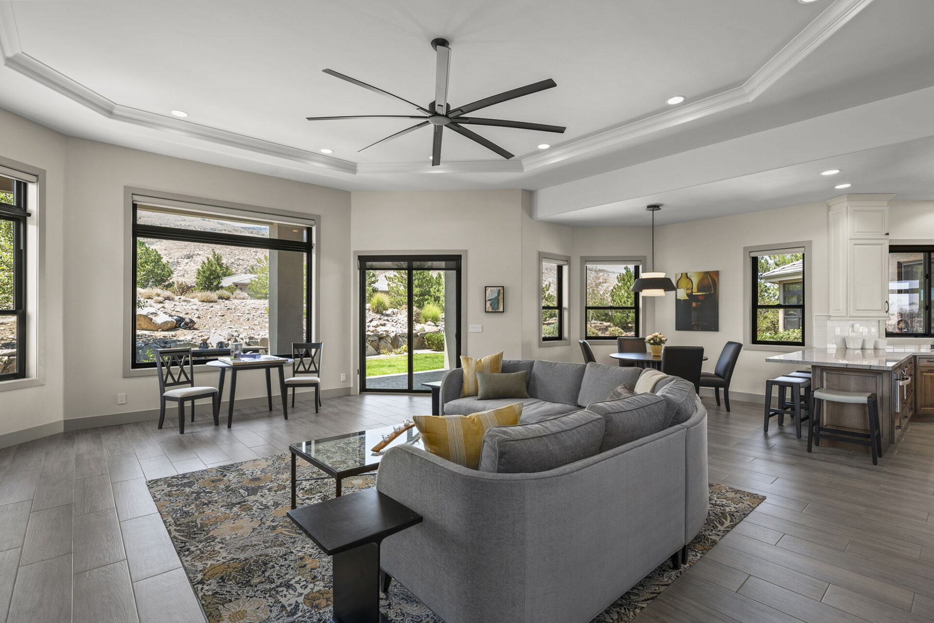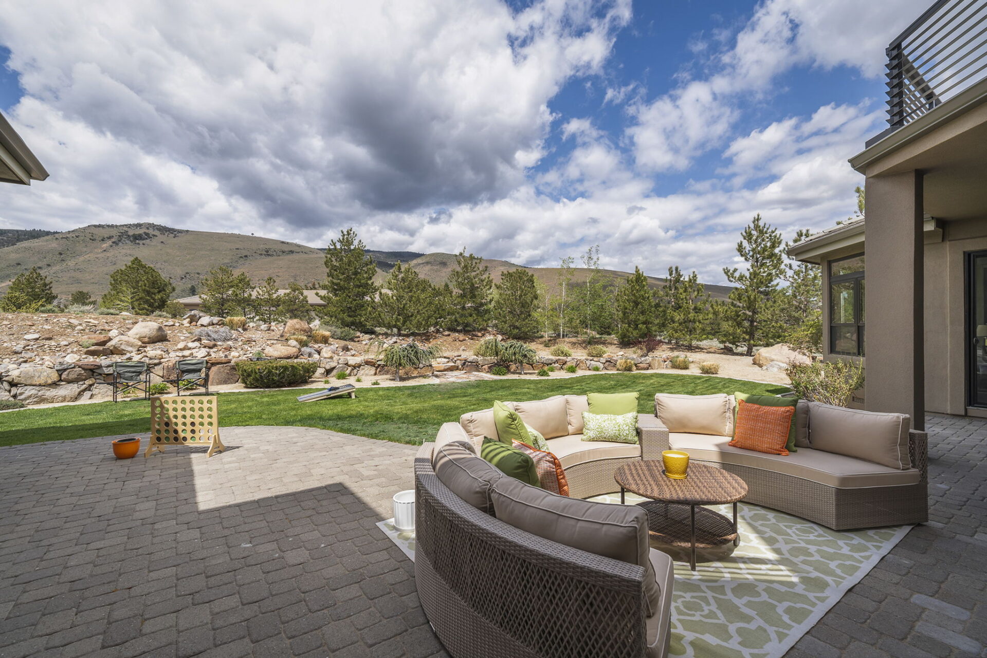 Step into 6177 North Featherstone, a residence reimagined from the ground up to embody the sophistication of design & the effortless grace of High Desert living. Nestled within the prestigious ArrowCreek community, this fully remodeled estate offers 5,586 square feet of inspired living on a full acre. With sweeping views across the Sierra Nevada & Mt. Rose mountains, lush golf fairways, & sparkling city lights, every angle of this home tells a story of elegance & connection to its surroundings. The owners began their remodel with purpose: to create a seamless flow, where form meets function & every detail enhances life, leisure, & entertaining. Walls were softened, pillars removed, & spaces reimagined to capture natural light & open sightlines. Modern finishes & thoughtful design balance grandeur with comfort. A finished basement & upstairs library added 312 square feet, expanding versatility without sacrificing intimacy. Arrival makes an unforgettable impression with a custom 9×6 steel pivot door by Modern Steel Doors of Arizona. Inside, a light-filled foyer leads to an expanded balcony, where sweeping golf course & city views set the stage for sunrise coffee or starlit evenings. At the heart of the home, the Dining Room has been elevated into a dramatic entertaining space with soaring two-story ceilings & a two-sided fireplace connecting indoors & outdoors. Andersen sliding doors open to patios & gardens, while striking Sonneman fixtures & art lighting create ambiance. Whether hosting holidays or intimate dinners, the space adapts with ease. The Main En Suite is a private retreat, complete with custom California Closets, cove lighting, & remote-controlled Hunter Douglas shades. The spa-inspired bath showcases a freestanding soaking tub beneath chandeliers, a dual-entry steam shower with rain head & sprayers, natural stone floors, shimmering glass tile, & custom cabinetry with quartz counters & lighted mirrors. The Great Room centers on a custom travertine fireplace with black quartz mantel, complemented by wood-grain tile floors, a Minka Aire fan, & integrated Sonos audio. The Kitchen & Nook feature a Wolf 48″ range, Sub-Zero refrigerator, & a central island with seating. The Games Room delights with Hubbardton Forge lighting, speakers, & motorized shades. A dramatic staircase of black-stained oak & iron railings rises beneath a cascading Sonneman chandelier. Upstairs, the new Library offers custom bookcases, club seating, & a 12-foot Andersen glass wall opening to a balcony with panoramic views. Four additional en suite bedrooms provide privacy, storage, & character. Outdoors, multiple patios, a two-sided fireplace, & landscaped grounds enhanced with solar lighting create serene gathering spaces. Modern systems include central HVAC with three units, radiant heated floors, Tesla solar panels, Cat-6 wiring, Sonos audio, & a four-car garage with EV charger. This estate is more than a home—it is a lifestyle. From morning coffee on the balcony to wine in the library at dusk, from quiet family nights to grand celebrations, this residence harmonizes elegance, comfort, & versatility. Every space has been thoughtfully crafted, every view a reminder of Reno’s beauty. This is a rare opportunity to own a fully realized vision of home, where luxury & ease coexist seamlessly.