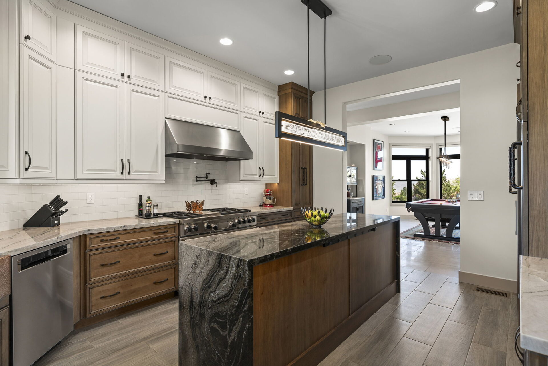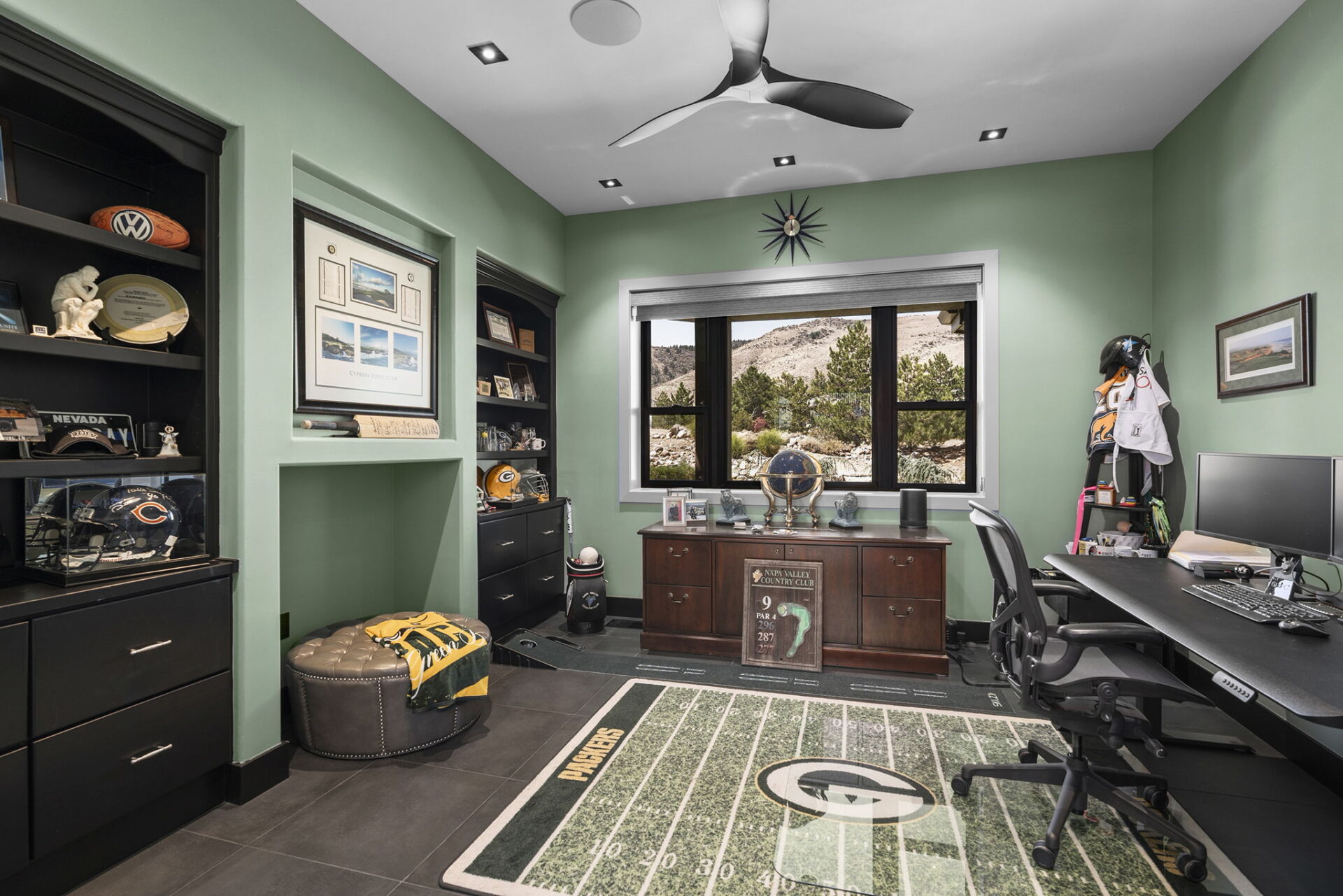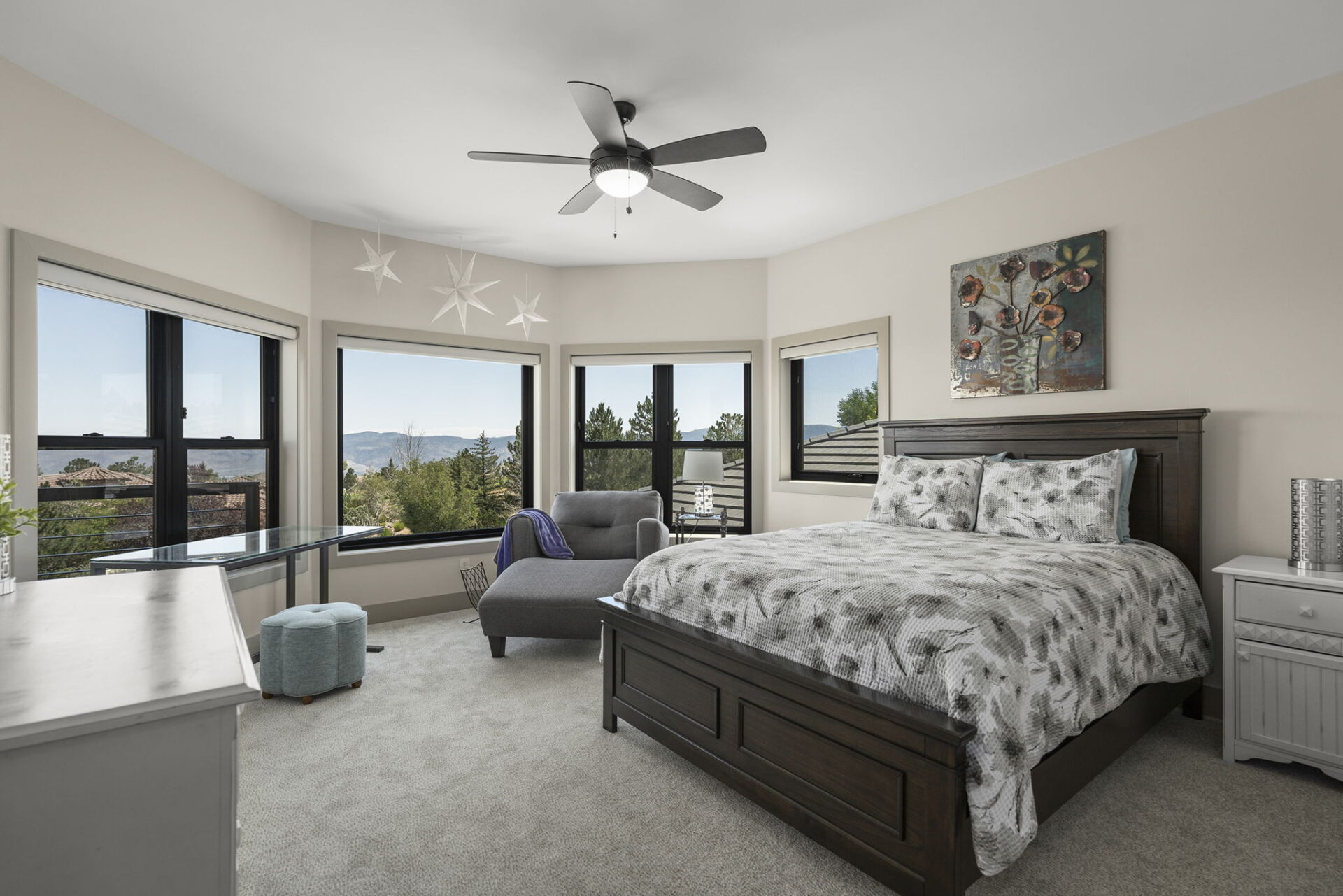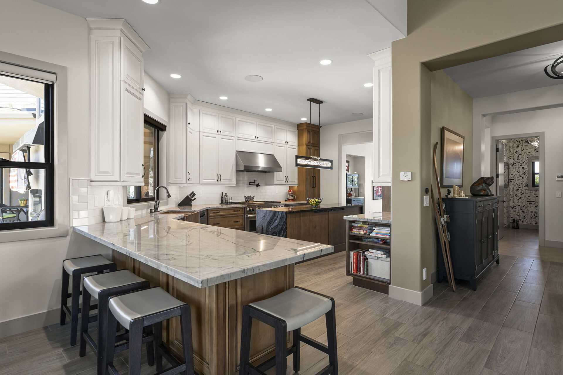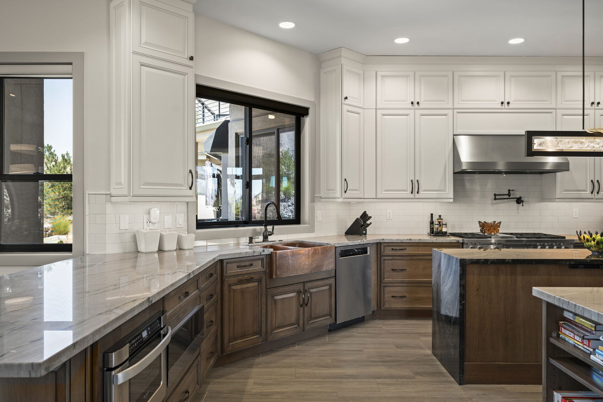 Step into 6177 North Featherstone, a residence reimagined from the ground up to embody the sophistication of design & the effortless grace of High Desert living. Nestled within the prestigious ArrowCreek community, this fully remodeled estate offers 5,586 square feet of inspired living on a full acre. With sweeping views across the Sierra Nevada & Mt. Rose mountains, lush golf fairways, & sparkling city lights, every angle of this home tells a story of elegance & connection to its surroundings. The owners began their remodel with purpose: to create a seamless flow, where form meets function & every detail enhances life, leisure, & entertaining. Walls were softened, pillars removed, & spaces reimagined to capture natural light & open sightlines. Modern finishes & thoughtful design balance grandeur with comfort. A finished basement & upstairs library added 312 square feet, expanding versatility without sacrificing intimacy. Arrival makes an unforgettable impression with a custom 9×6 steel pivot door by Modern Steel Doors of Arizona. Inside, a light-filled foyer leads to an expanded balcony, where sweeping golf course & city views set the stage for sunrise coffee or starlit evenings. At the heart of the home, the Dining Room has been elevated into a dramatic entertaining space with soaring two-story ceilings & a two-sided fireplace connecting indoors & outdoors. Andersen sliding doors open to patios & gardens, while striking Sonneman fixtures & art lighting create ambiance. Whether hosting holidays or intimate dinners, the space adapts with ease. The Main En Suite is a private retreat, complete with custom California Closets, cove lighting, & remote-controlled Hunter Douglas shades. The spa-inspired bath showcases a freestanding soaking tub beneath chandeliers, a dual-entry steam shower with rain head & sprayers, natural stone floors, shimmering glass tile, & custom cabinetry with quartz counters & lighted mirrors. The Great Room centers on a custom travertine fireplace with black quartz mantel, complemented by wood-grain tile floors, a Minka Aire fan, & integrated Sonos audio. The Kitchen & Nook feature a Wolf 48″ range, Sub-Zero refrigerator, & a central island with seating. The Games Room delights with Hubbardton Forge lighting, speakers, & motorized shades. A dramatic staircase of black-stained oak & iron railings rises beneath a cascading Sonneman chandelier. Upstairs, the new Library offers custom bookcases, club seating, & a 12-foot Andersen glass wall opening to a balcony with panoramic views. Four additional en suite bedrooms provide privacy, storage, & character. Outdoors, multiple patios, a two-sided fireplace, & landscaped grounds enhanced with solar lighting create serene gathering spaces. Modern systems include central HVAC with three units, radiant heated floors, Tesla solar panels, Cat-6 wiring, Sonos audio, & a four-car garage with EV charger. This estate is more than a home—it is a lifestyle. From morning coffee on the balcony to wine in the library at dusk, from quiet family nights to grand celebrations, this residence harmonizes elegance, comfort, & versatility. Every space has been thoughtfully crafted, every view a reminder of Reno’s beauty. This is a rare opportunity to own a fully realized vision of home, where luxury & ease coexist seamlessly.
