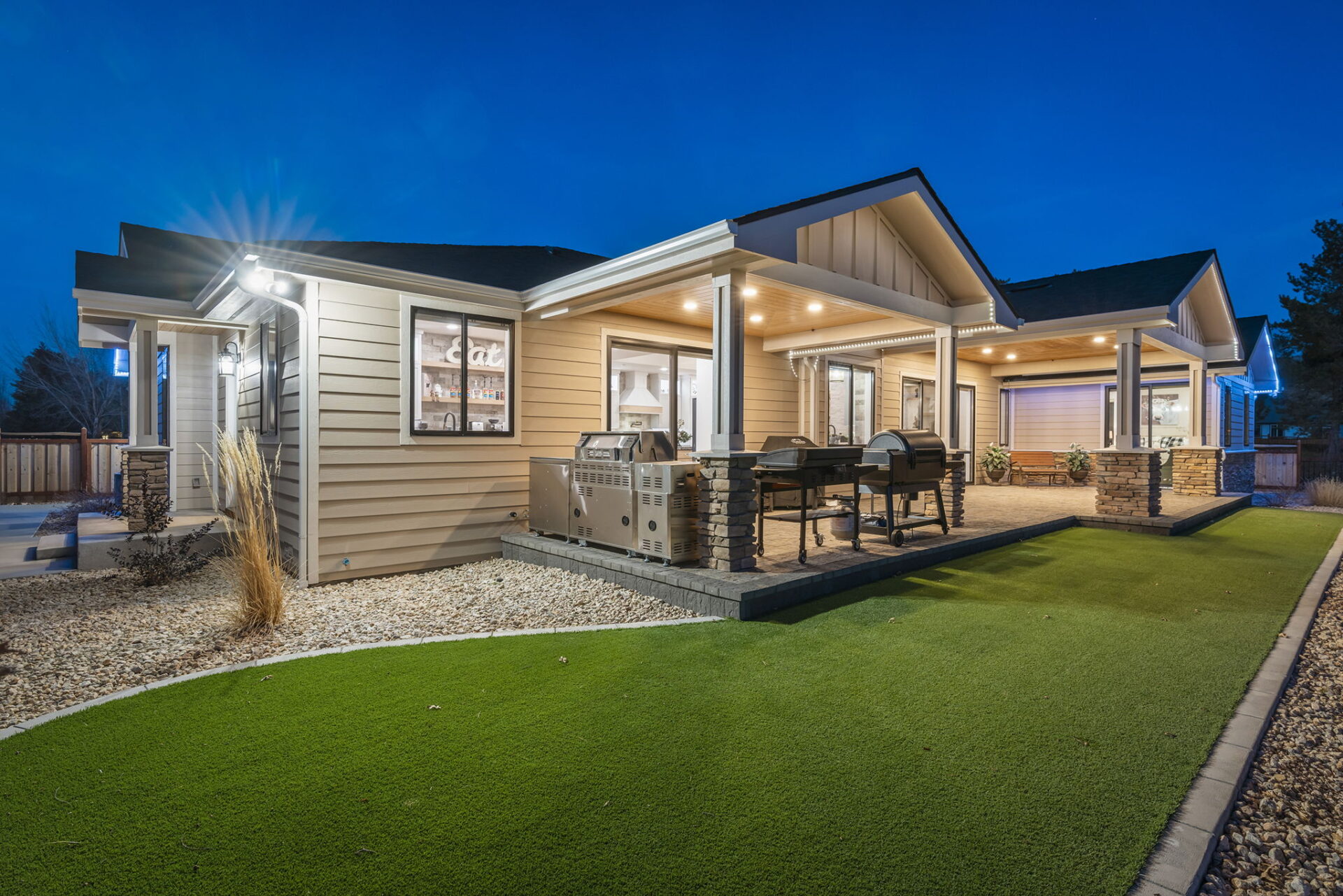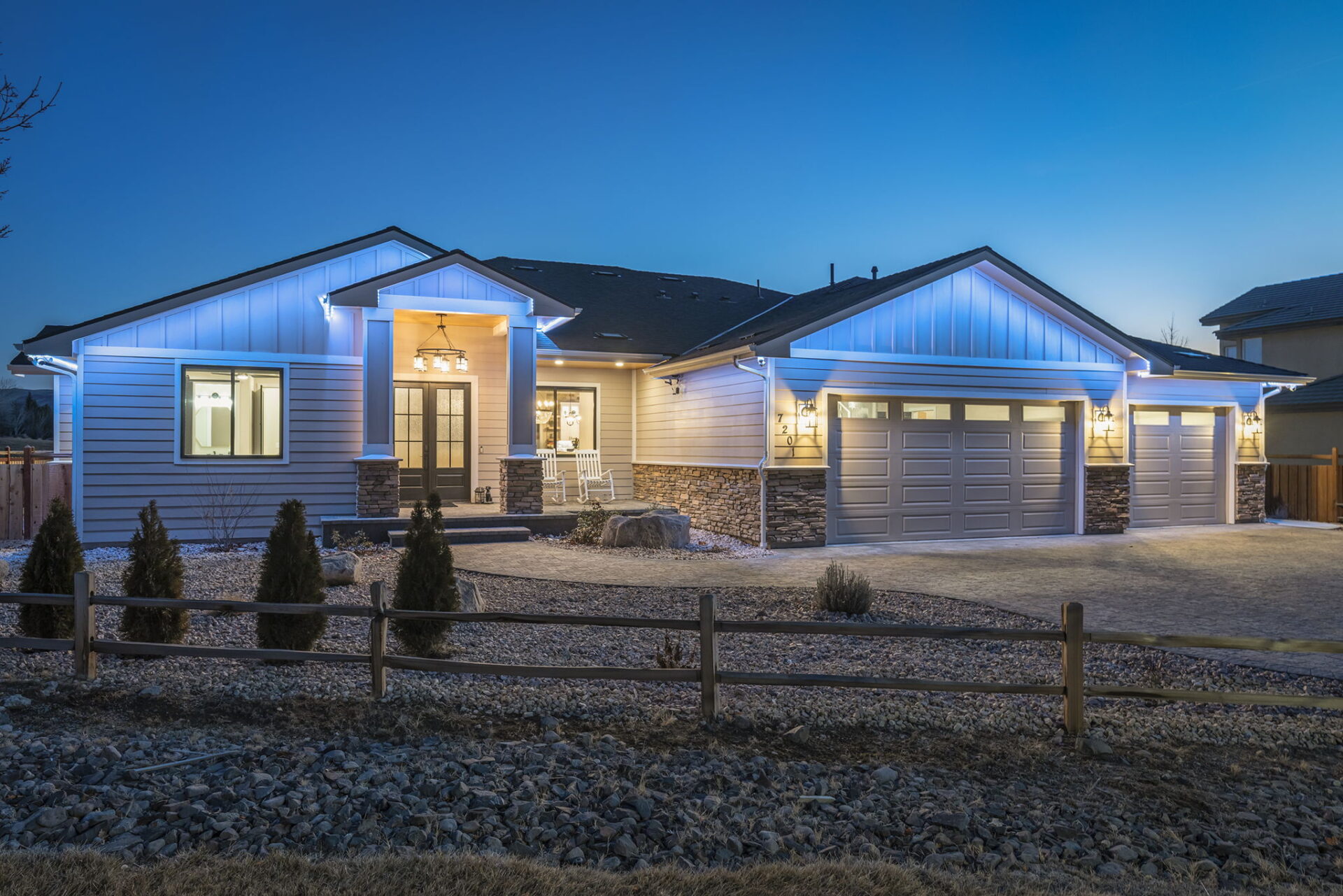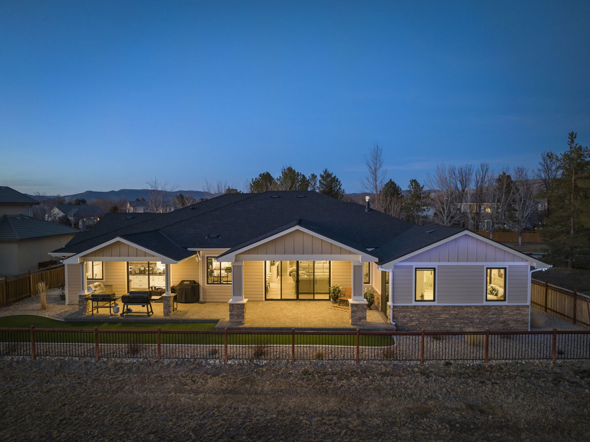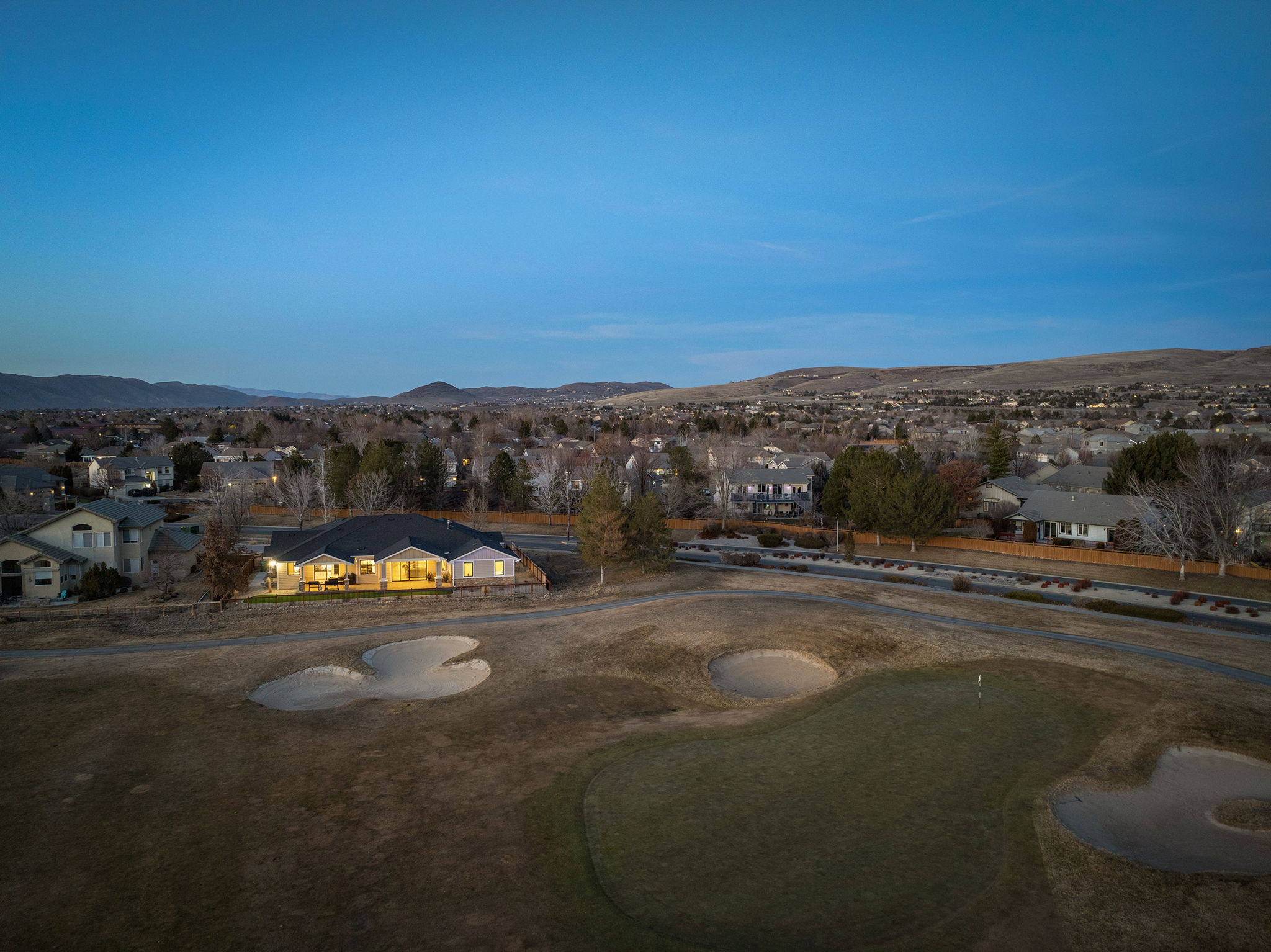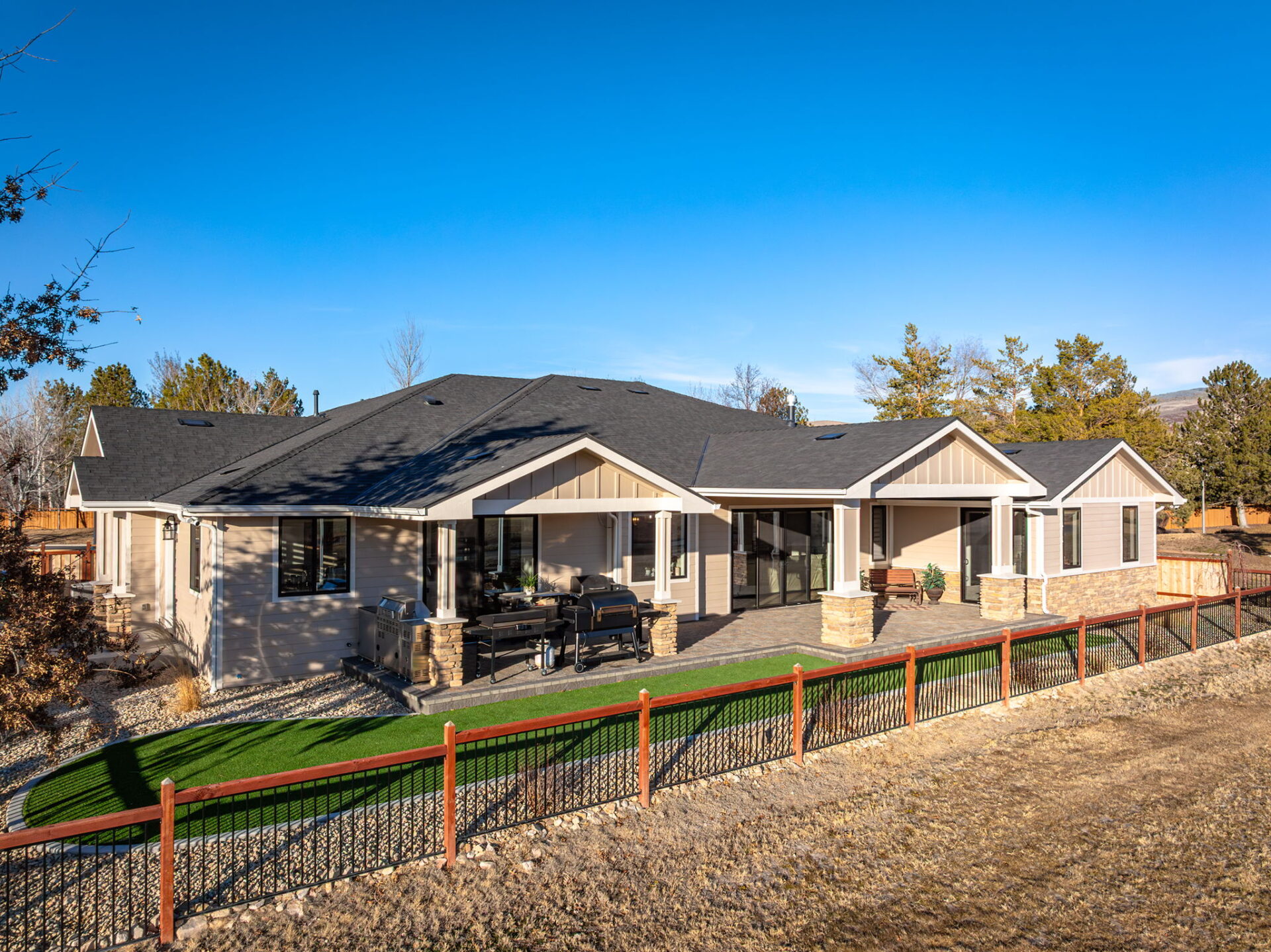 Welcome to 7201 Silver King Drive, where refined luxury meets everyday livability in one of Sparks’ most desirable settings. Situated on an expansive .43-acre lot, this exceptional 3,400-square-foot residence offers 4 bedrooms and 4 bathrooms, thoughtfully designed for those who value panoramic views, modern comfort, and effortless entertaining. From the moment you arrive, the home makes a statement. El Dorado pavers accent the driveway, front porch, and dual rear patios, while dramatic Govee soffit lighting sets the mood after sunset. Smart exterior security, including a Nest Cam with floodlights and motion alerts, provides peace of mind. Inside and out, triple-zone climate control with Nest thermostats ensures year-round comfort at the touch of a button. Step inside to discover hickory wire-brushed engineered hardwood floors flowing through open, light-filled living spaces. The living room is anchored by a striking floor-to-ceiling stacked stone and honed marble linear gas fireplace with color-changing glass accents, complemented by custom built-in cabinetry and motorized dual-shade window coverings that blend style with smart technology. The chef’s kitchen is a true showpiece—featuring custom soft-close shaker cabinetry, premium pull-outs, titanium leathered granite countertops, and ZLINE Autograph Edition professional-grade appliances. A hidden pantry entrance discreetly reveals both an expansive storage area and a thoughtfully designed laundry space, complete with custom cabinetry and a granite sink—an elegant blend of convenience and design. The primary suite is a private retreat designed for total relaxation. Enjoy radiant heated flooring, an oversized walk-in shower with LED lighting and Bluetooth speakers, and an extra-deep soaking tub. The custom walk-in closet system completes the space with elegance and organization. Additional highlights include a spacious 3-car garage with two EV charging stations, a secondary kitchen with beverage bar and wine refrigerator, and multiple outdoor living areas ideal for entertaining or unwinding while taking in the views. At 7201 Silver King Drive, luxury isn’t just seen—it’s felt. This is a home where comfort, technology, and design come together to create an elevated lifestyle you’ll love coming home to.