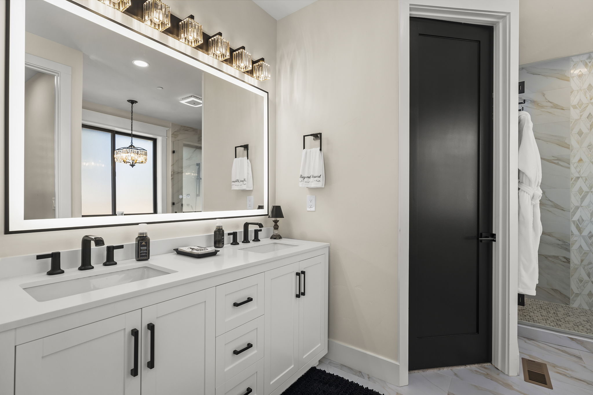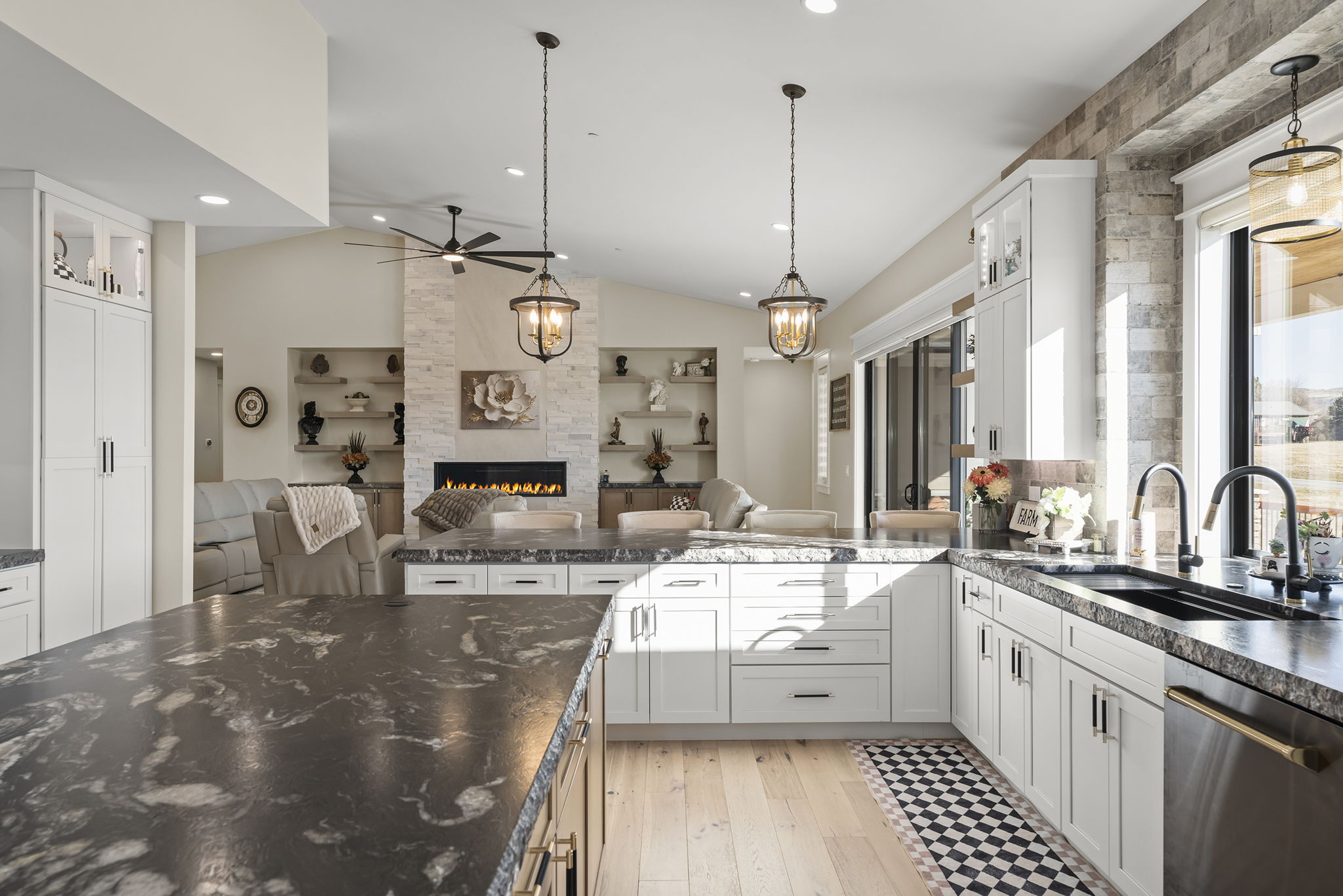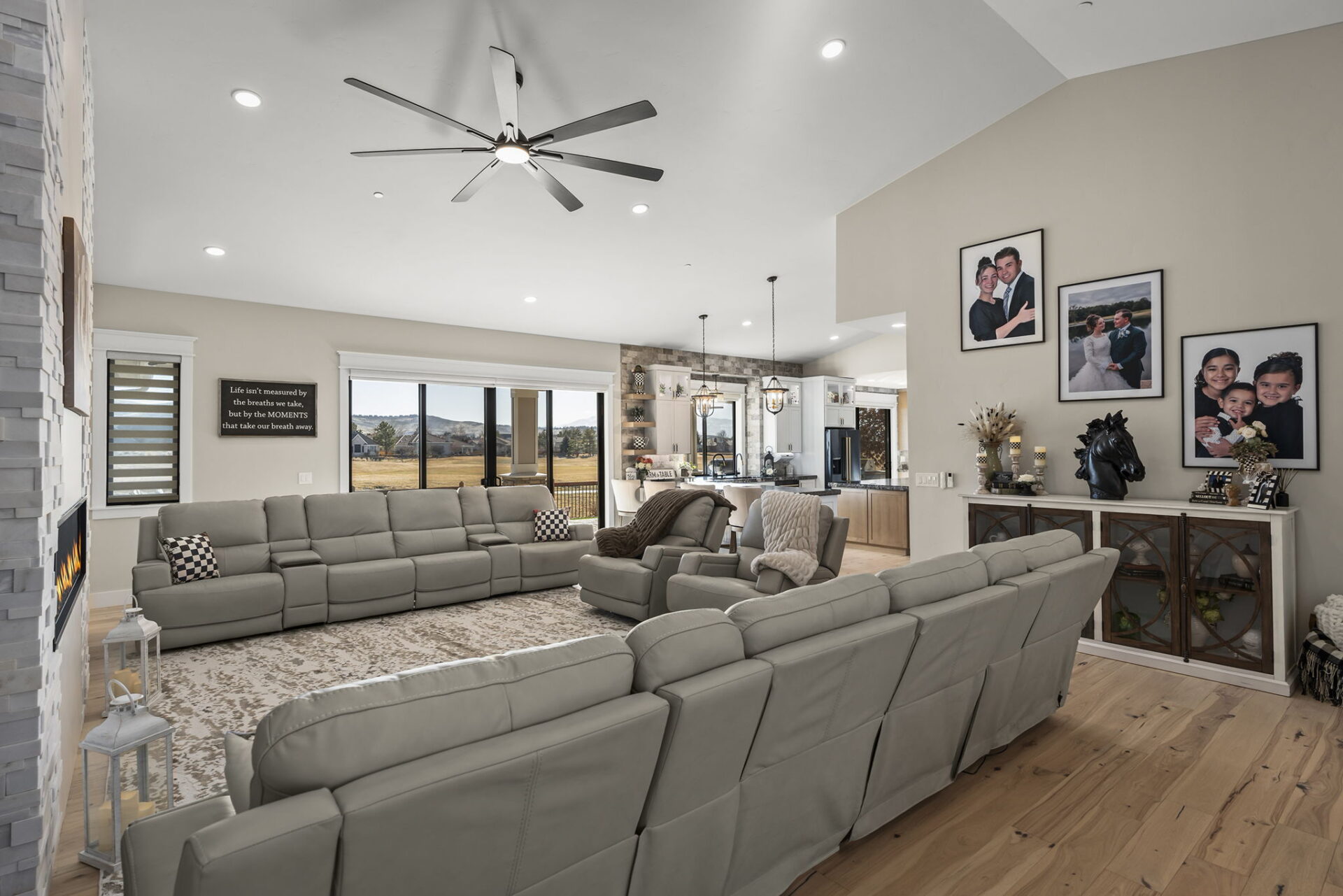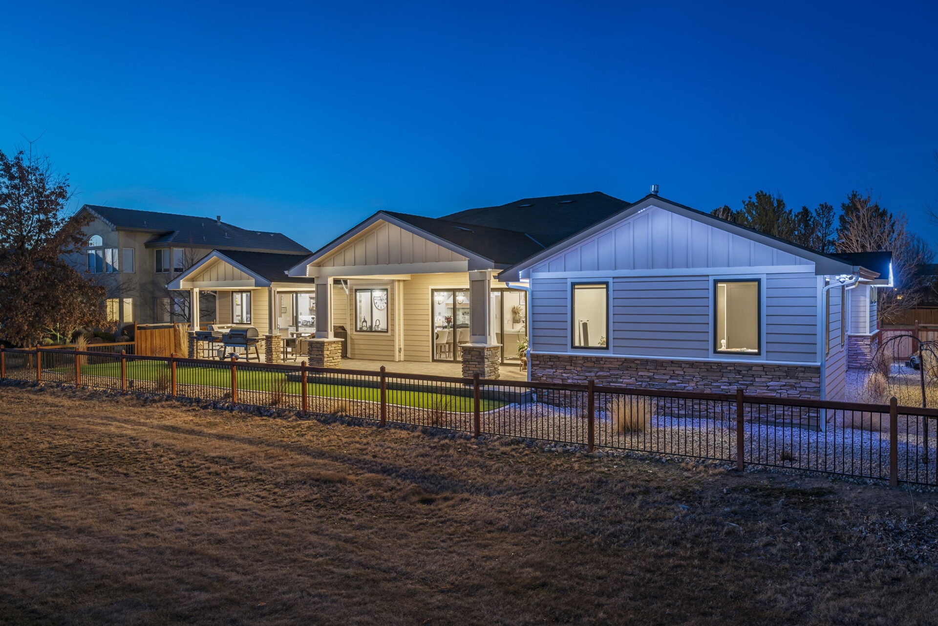 Welcome to 7201 Silver King Drive, where refined luxury meets everyday livability in one of Sparks’ most desirable settings. Situated on an expansive .43-acre lot, this exceptional 3,400-square-foot residence offers 4 bedrooms and 4 bathrooms, thoughtfully designed for those who value panoramic views, modern comfort, and effortless entertaining. From the moment you arrive, the home makes a statement. El Dorado pavers accent the driveway, front porch, and dual rear patios, while dramatic Govee soffit lighting sets the mood after sunset. Smart exterior security, including a Nest Cam with floodlights and motion alerts, provides peace of mind. Inside and out, triple-zone climate control with Nest thermostats ensures year-round comfort at the touch of a button. Step inside to discover hickory wire-brushed engineered hardwood floors flowing through open, light-filled living spaces. The living room is anchored by a striking floor-to-ceiling stacked stone and honed marble linear gas fireplace with color-changing glass accents, complemented by custom built-in cabinetry and motorized dual-shade window coverings that blend style with smart technology. The chef’s kitchen is a true showpiece—featuring custom soft-close shaker cabinetry, premium pull-outs, titanium leathered granite countertops, and ZLINE Autograph Edition professional-grade appliances. A hidden pantry entrance discreetly reveals both an expansive storage area and a thoughtfully designed laundry space, complete with custom cabinetry and a granite sink—an elegant blend of convenience and design. The primary suite is a private retreat designed for total relaxation. Enjoy radiant heated flooring, an oversized walk-in shower with LED lighting and Bluetooth speakers, and an extra-deep soaking tub. The custom walk-in closet system completes the space with elegance and organization. Additional highlights include a spacious 3-car garage with two EV charging stations, a secondary kitchen with beverage bar and wine refrigerator, and multiple outdoor living areas ideal for entertaining or unwinding while taking in the views. At 7201 Silver King Drive, luxury isn’t just seen—it’s felt. This is a home where comfort, technology, and design come together to create an elevated lifestyle you’ll love coming home to.